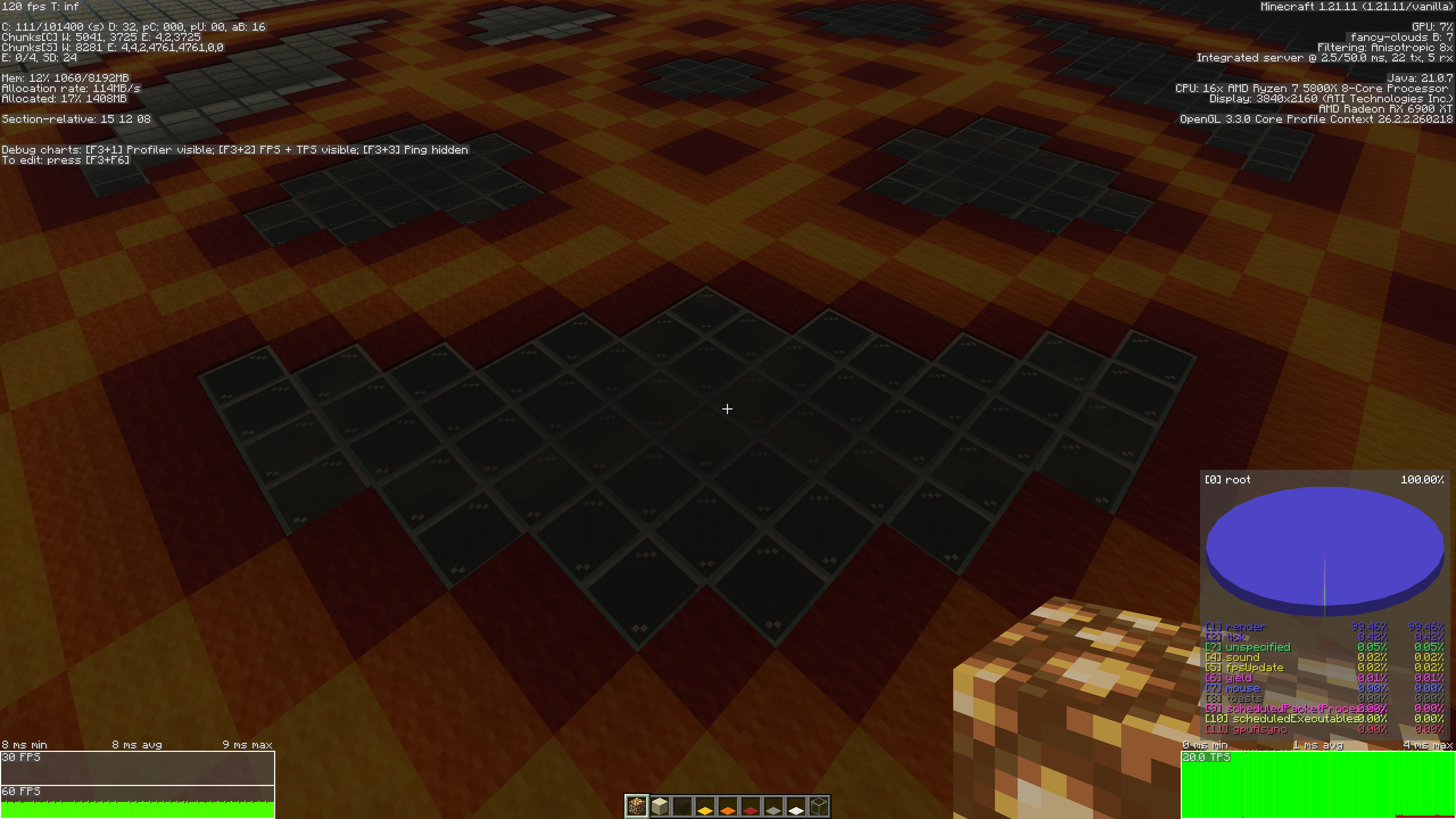 Attached is a screenshot of a game session in a fresh install unmodded version of the game. I have found and configured the F3+F6 menu to show ALL debug information, but I am barely getting more than the default. Issue has persisted with no less than 2 reinstalls. I have also deleted my .minecraft folder in testing. This issue is uncommon (potentially isolated to me or my environment) as I cannot find other reports or examples.