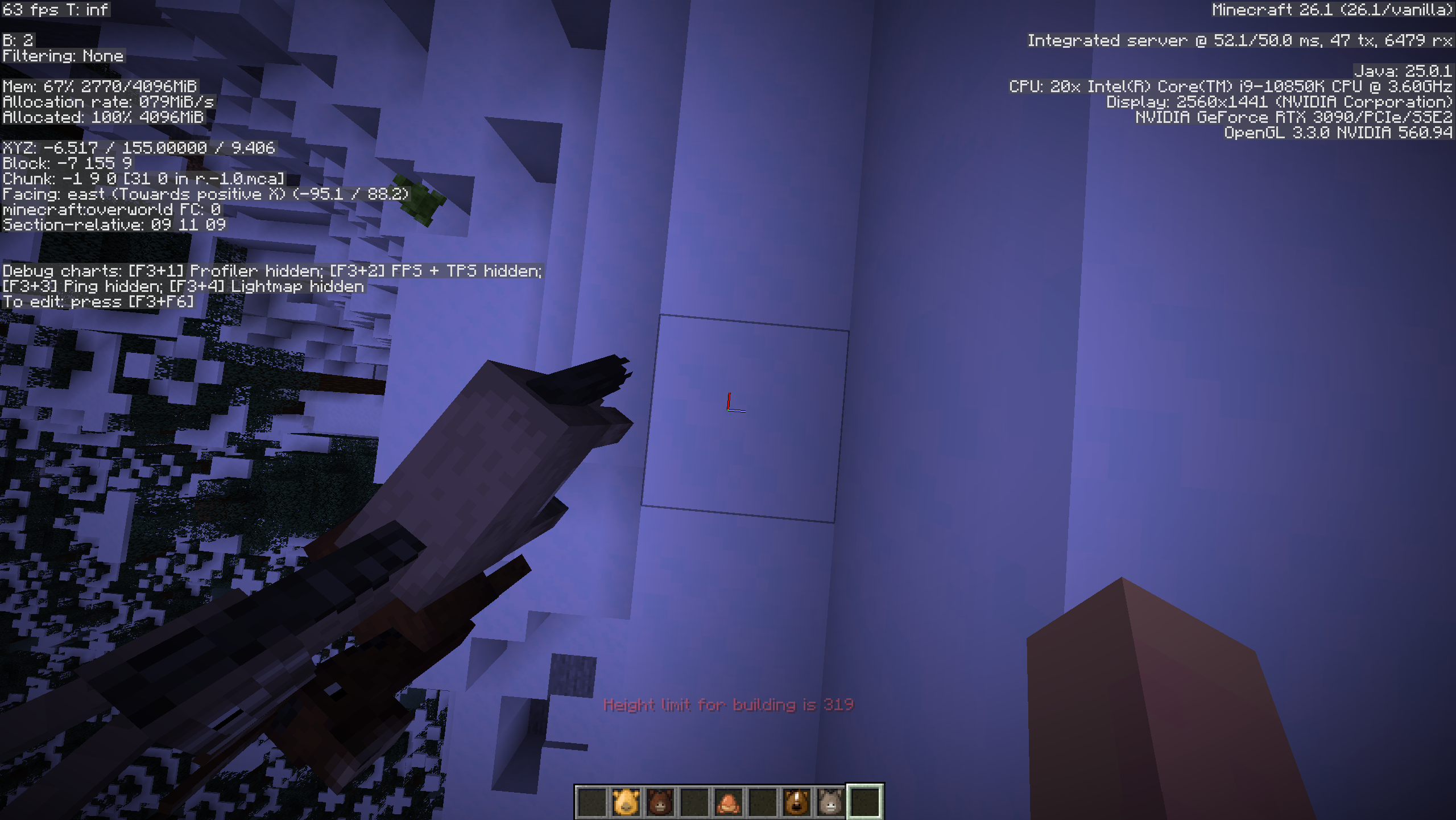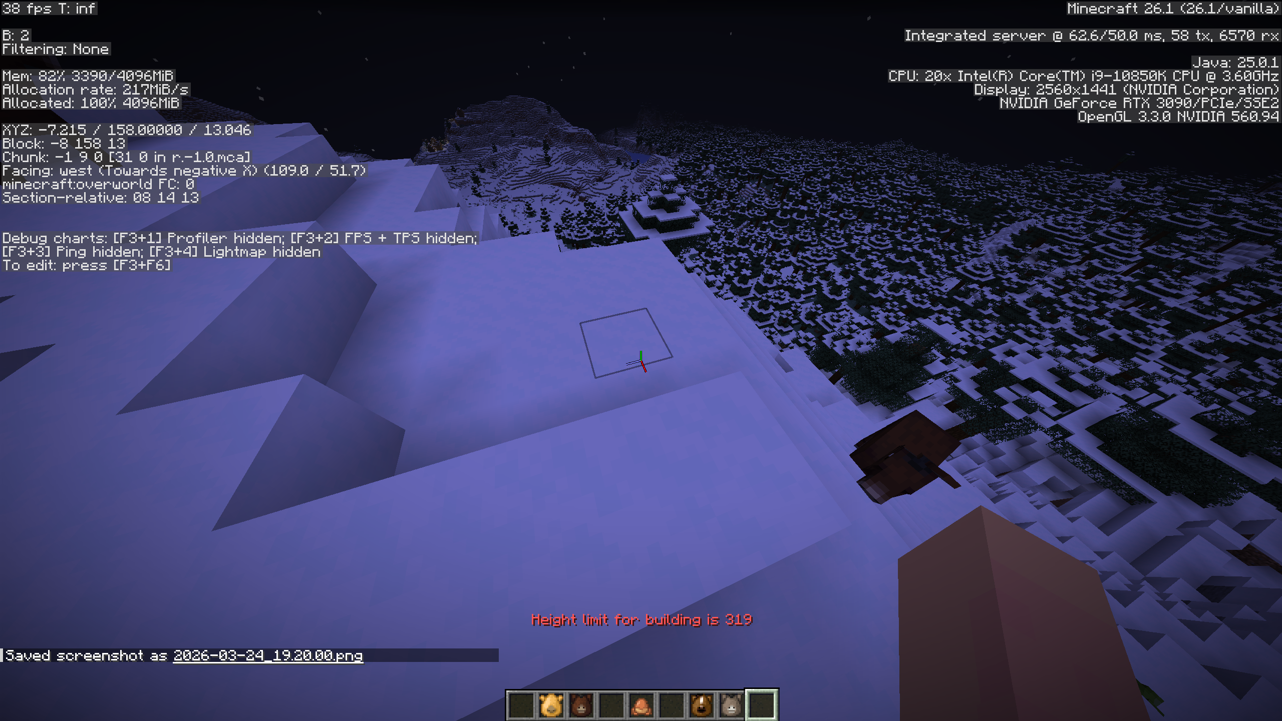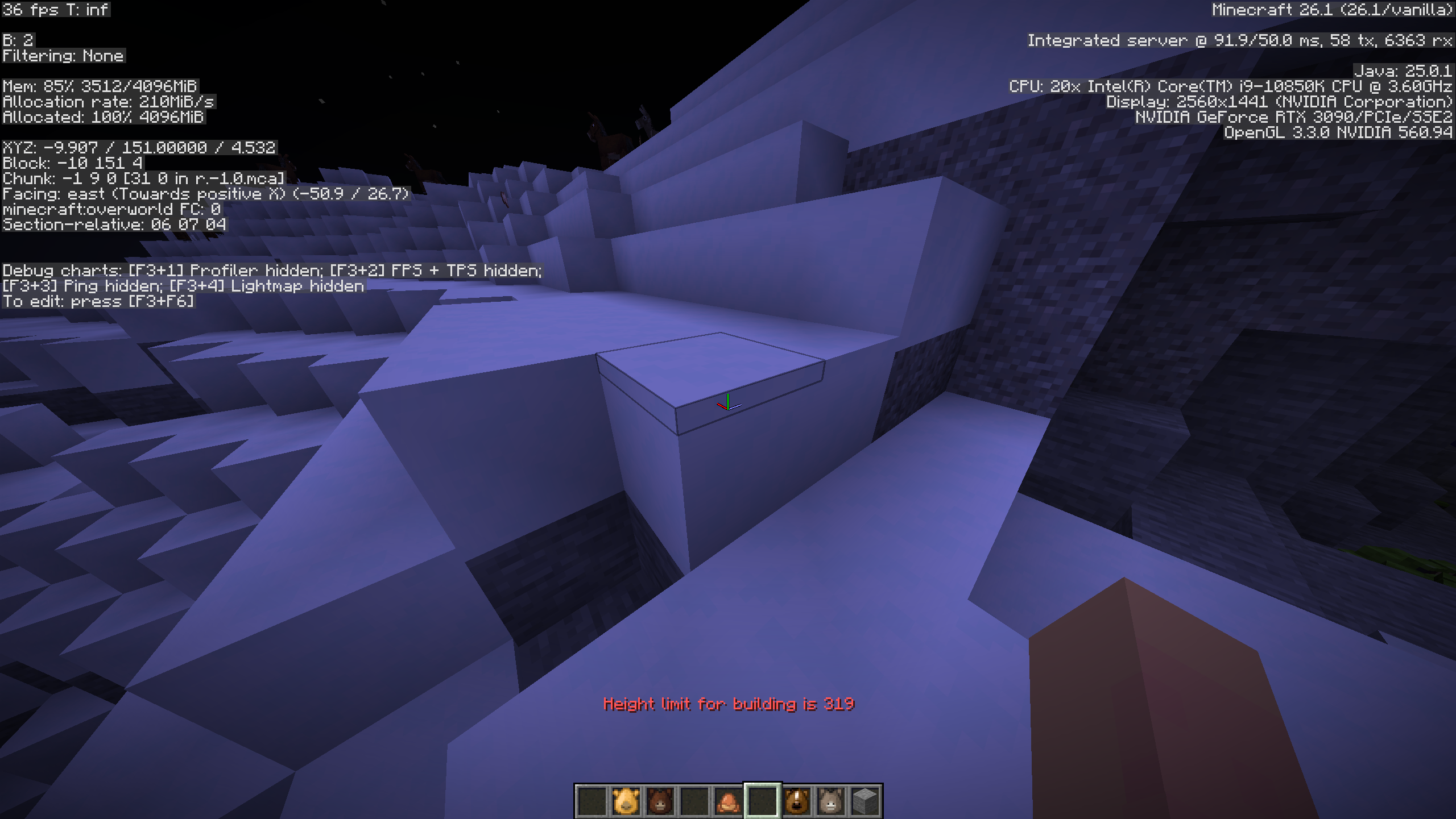 When attempting to tame a horse, donkey, or mule with high lag while spam right clicking a block causes the “Height limit for building is 319” message after being kicked off.