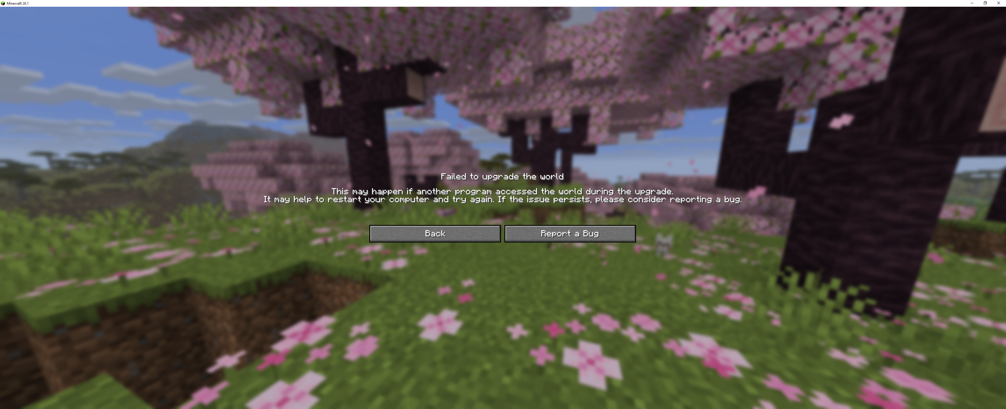 I have my data pack projects saved in my Dropbox, outside of my .minecraft folder. I use Windows junctions to link those data packs to my saves so that every change is immediately accessible in every world that uses that data pack. When I attempted to join my creative world today, the game gave me the option to back up my world and update, but attempting to update my world failed (claiming it was likely being accessed by another program). I made a copy of my world (which doesn’t copy the junctions), and the copy updated just fine. The cmd command used to create the junctions in my datapack folder was the following: