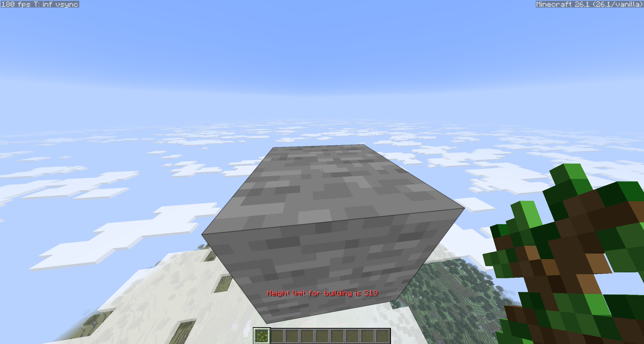 Normally when you attempt to place a block above or below the world, the messages “Height limit for building is 319” or "Minimum height for building is -64” get displayed.