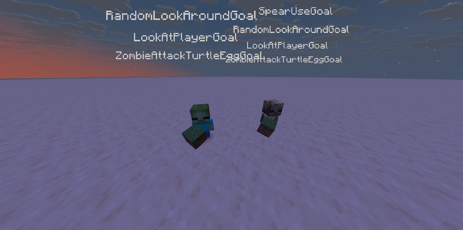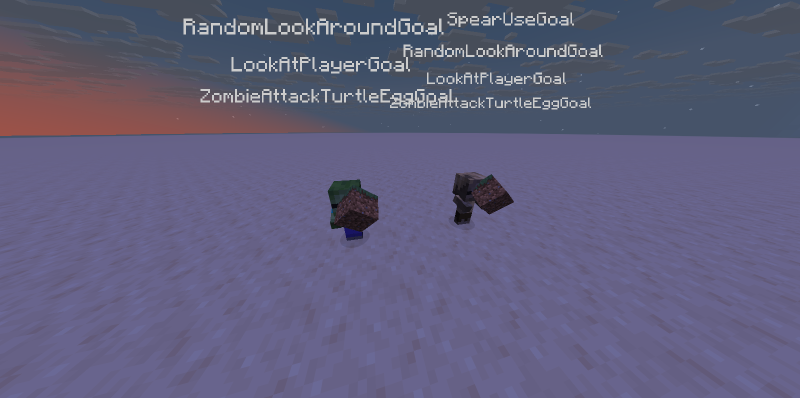 /summon minecraft:zombie ~ ~ ~ {NoAI:1,IsBaby:1,equipment:{offhand:{id:"minecraft:dirt",count:1}}} - Working