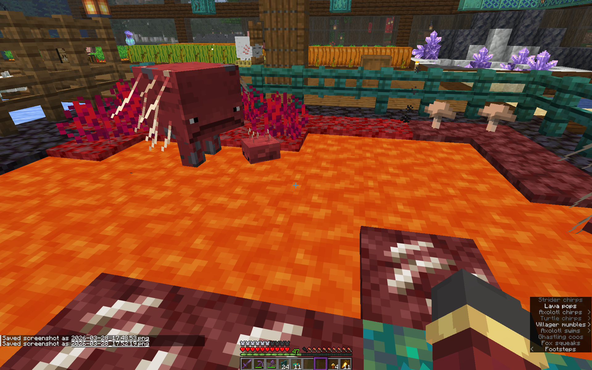 The new baby strider mob sinks very far into lava, so far that you cannot see its legs or face when it’s not looking at the player.