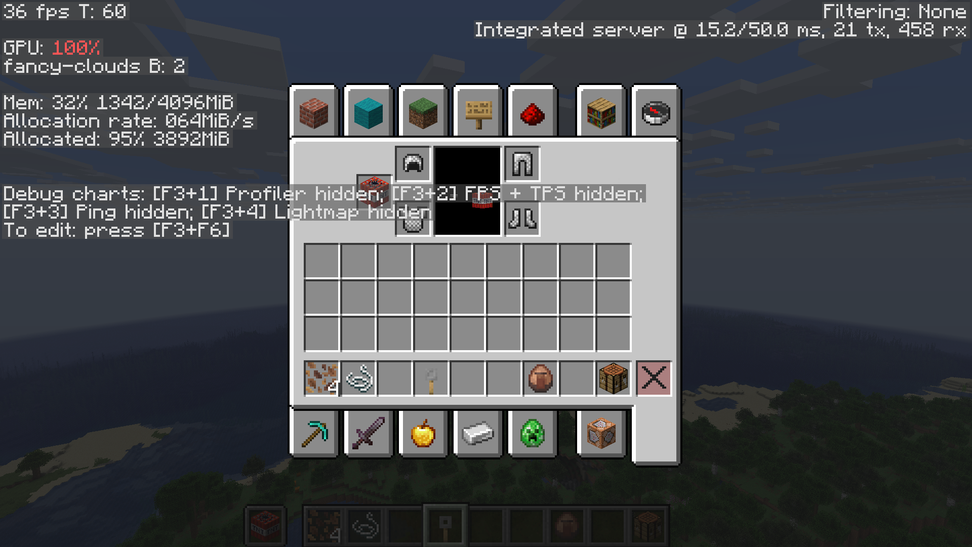 As you can see in my screenshots, the chest icon and the player model in the inventory are gone, however the f5 player is still visible.
