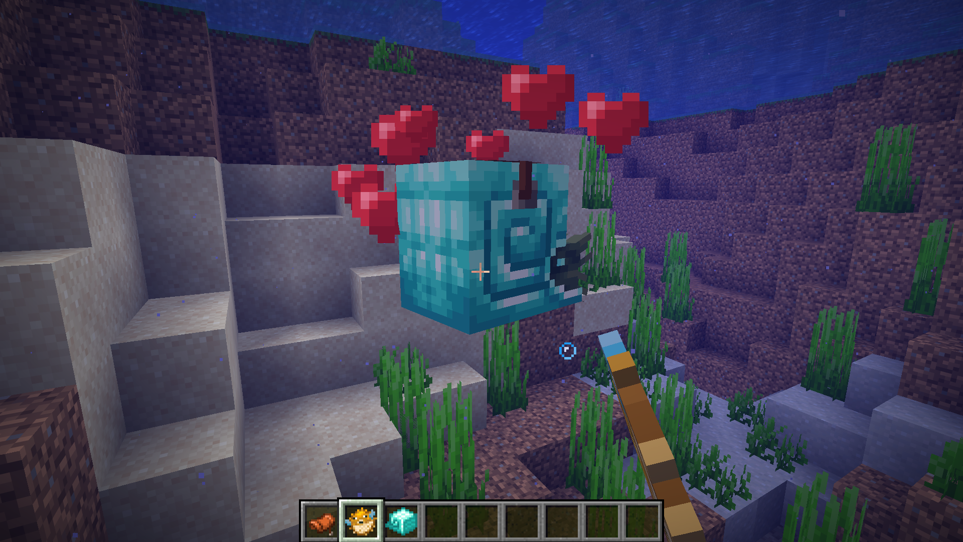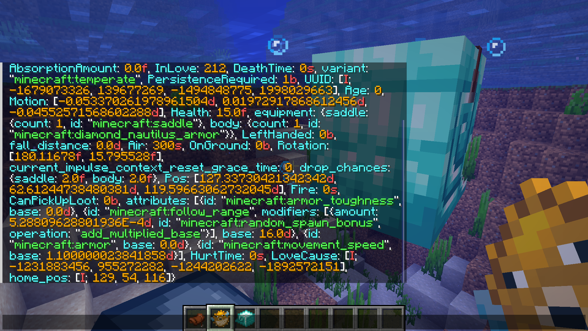 Right clicking a tamed zombie nautilus that is on full health with any type of fish uses the fish and creates heart particles. Nothing should happen since they can’t breed.