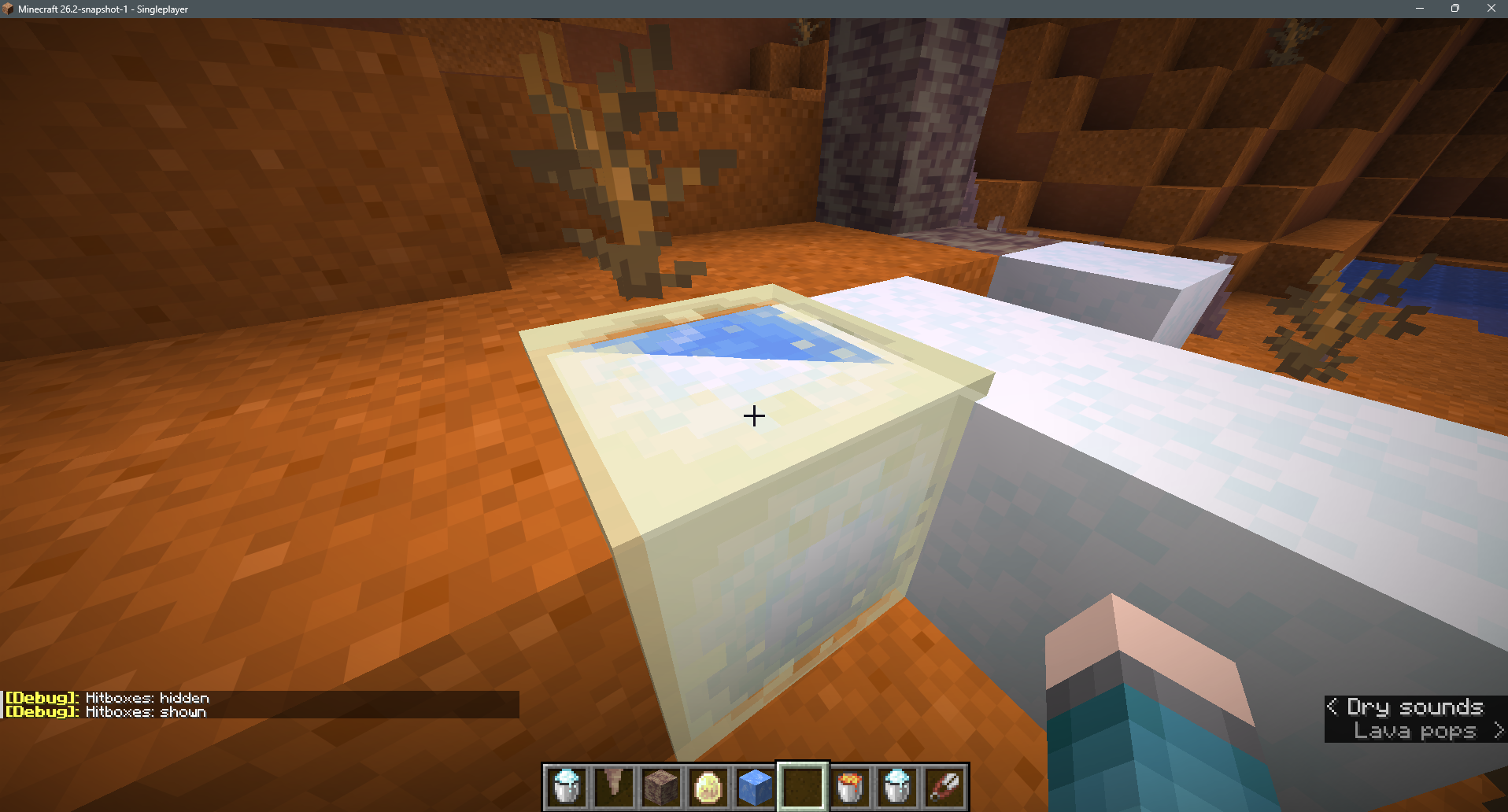 Z-fighting occurs when sulfur cubes with blocks inside them intersect powder snow.