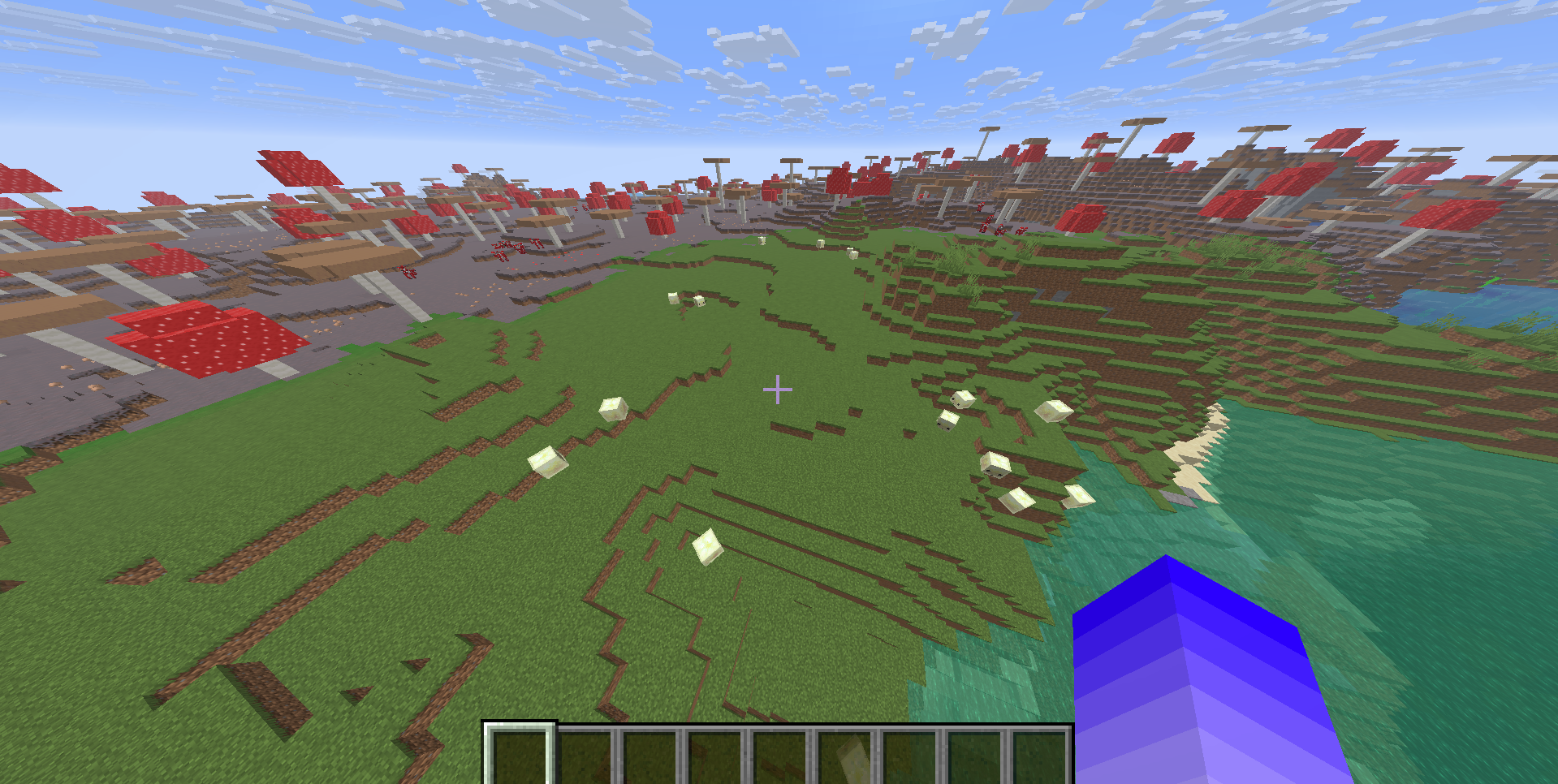 On mushroom islands, if the weirdness noise value reaches below -1.4 (approximately), sulfur caves will generate on the surface forming a big grass patch that spawns sulfur cubes on it & spawns hostile mobs at night. It doesnt spawn any common mobs like sheep or pigs though.