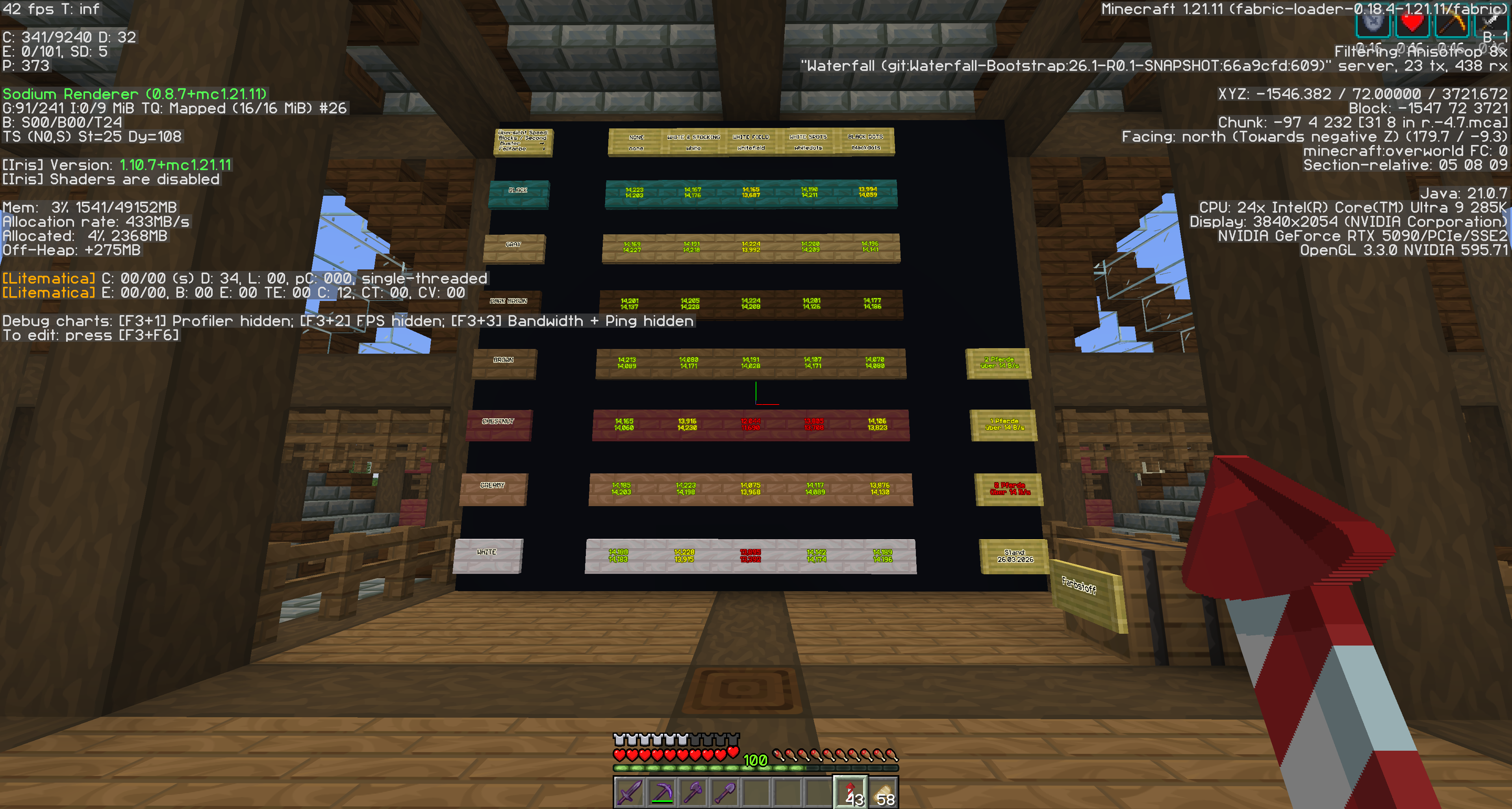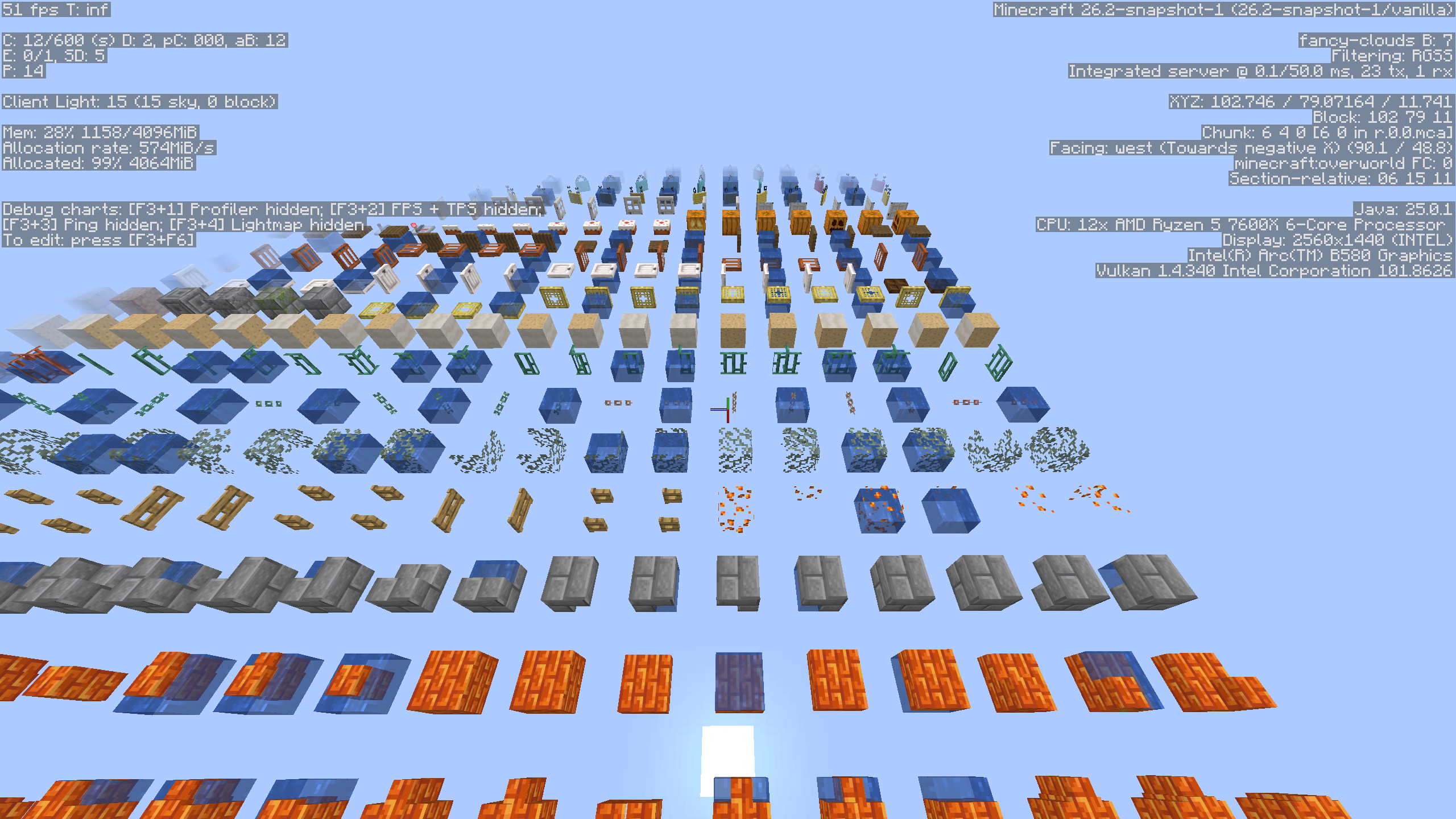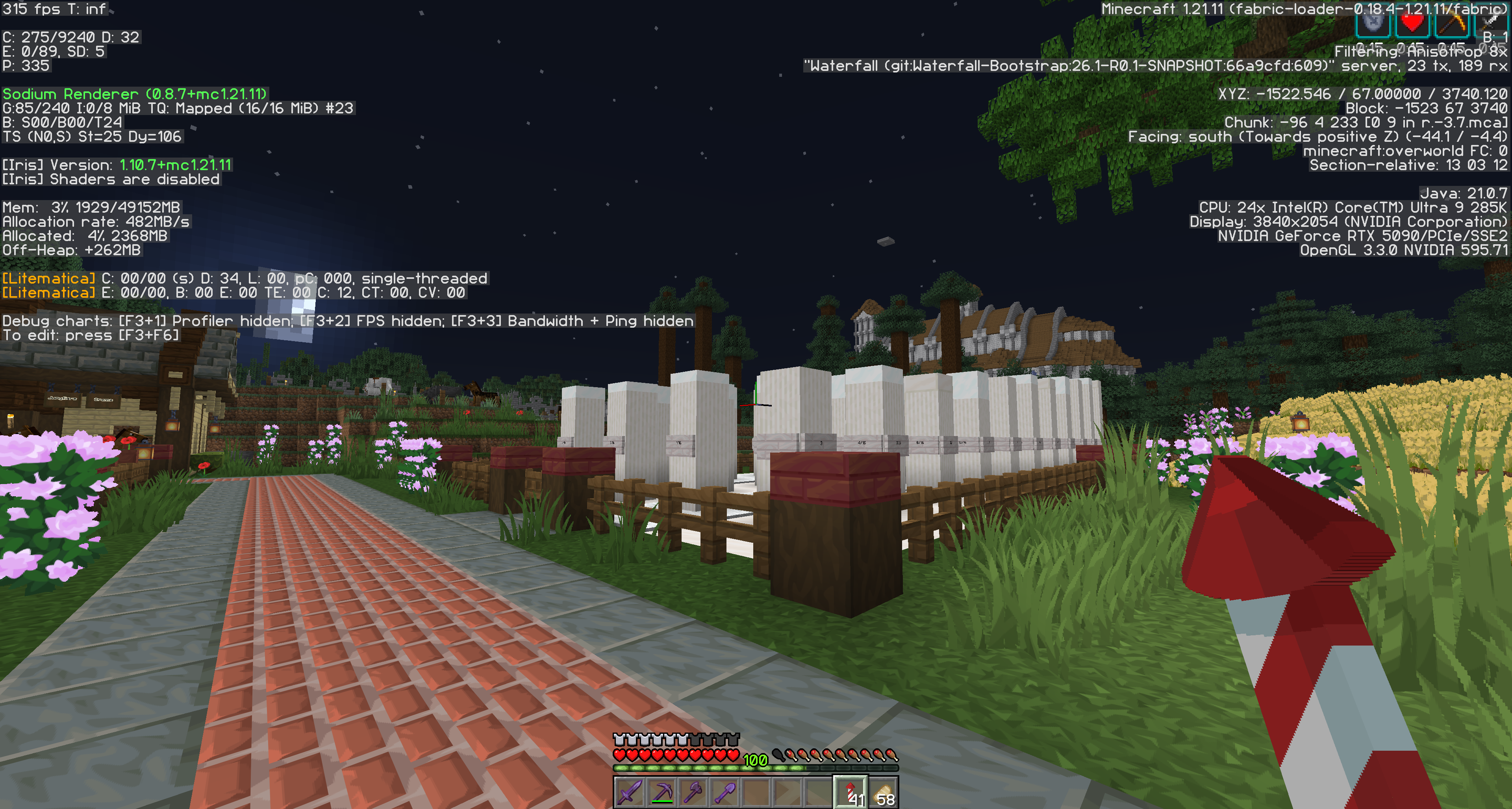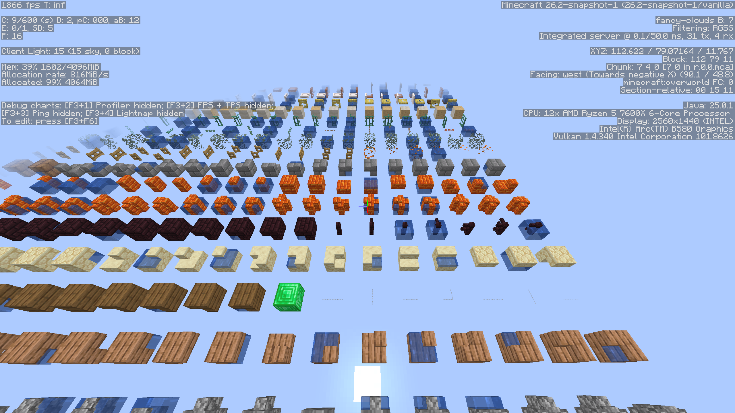 I’ve attached screenshots from the one time I randomly encountered the issue. You can see my FPS drop to very low values when I load the hanging signs (which are block entities).