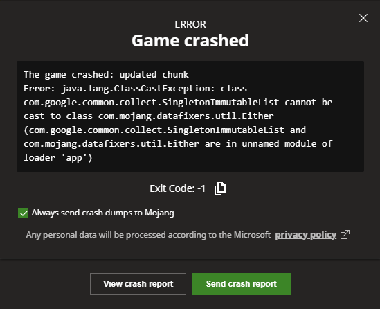 I am having an issue with upgrading my legacy world (created in 2014/2015) to the new 26.1 world format. The latest version of the world is 1.21.11, and I have tried upgrading it using 26.1, 26.1.1, and the latest version, 26.1.2; I have had no success with these versions. When attempting to upgrade the world, it begins the process but consistently crashes the game when the loading bar hits approximately 85% completion when “upgrading legacy structures.” The screenshot of the crash has been attached to this post.