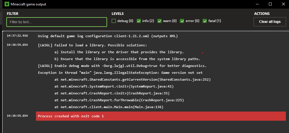 Game cannot launch and I am presented with an error message of the game crashing, (26.2-Snapshot 1 works for me)