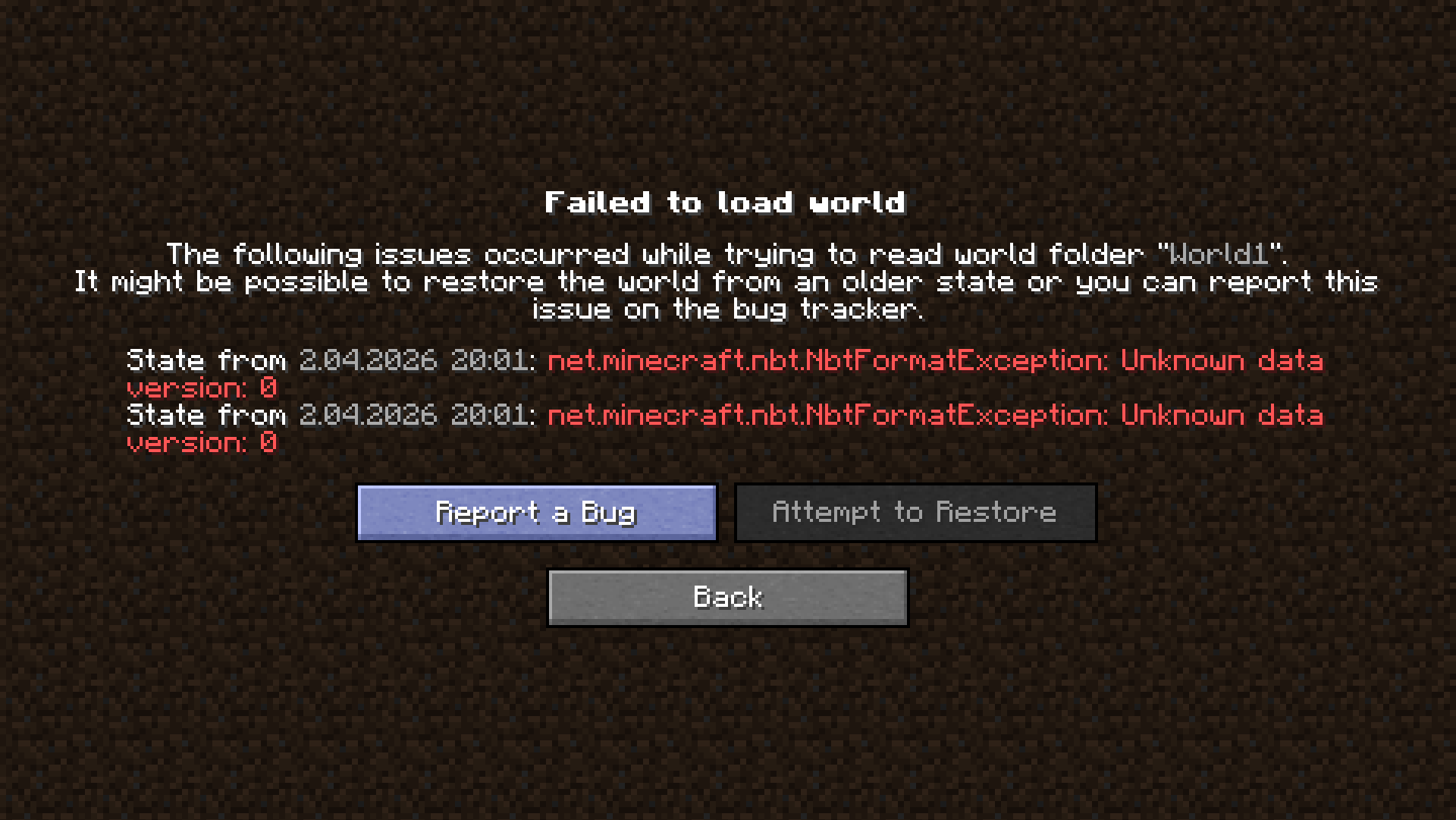 I was playing Minecraft but i wantet to go my 26.1.1 world but it was connot open please help