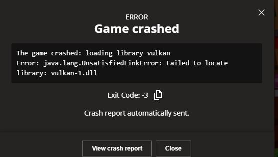 Error: java.lang.UnsatisfiedLinkError: Failed to locate library: vulkan-1.dllAttachments