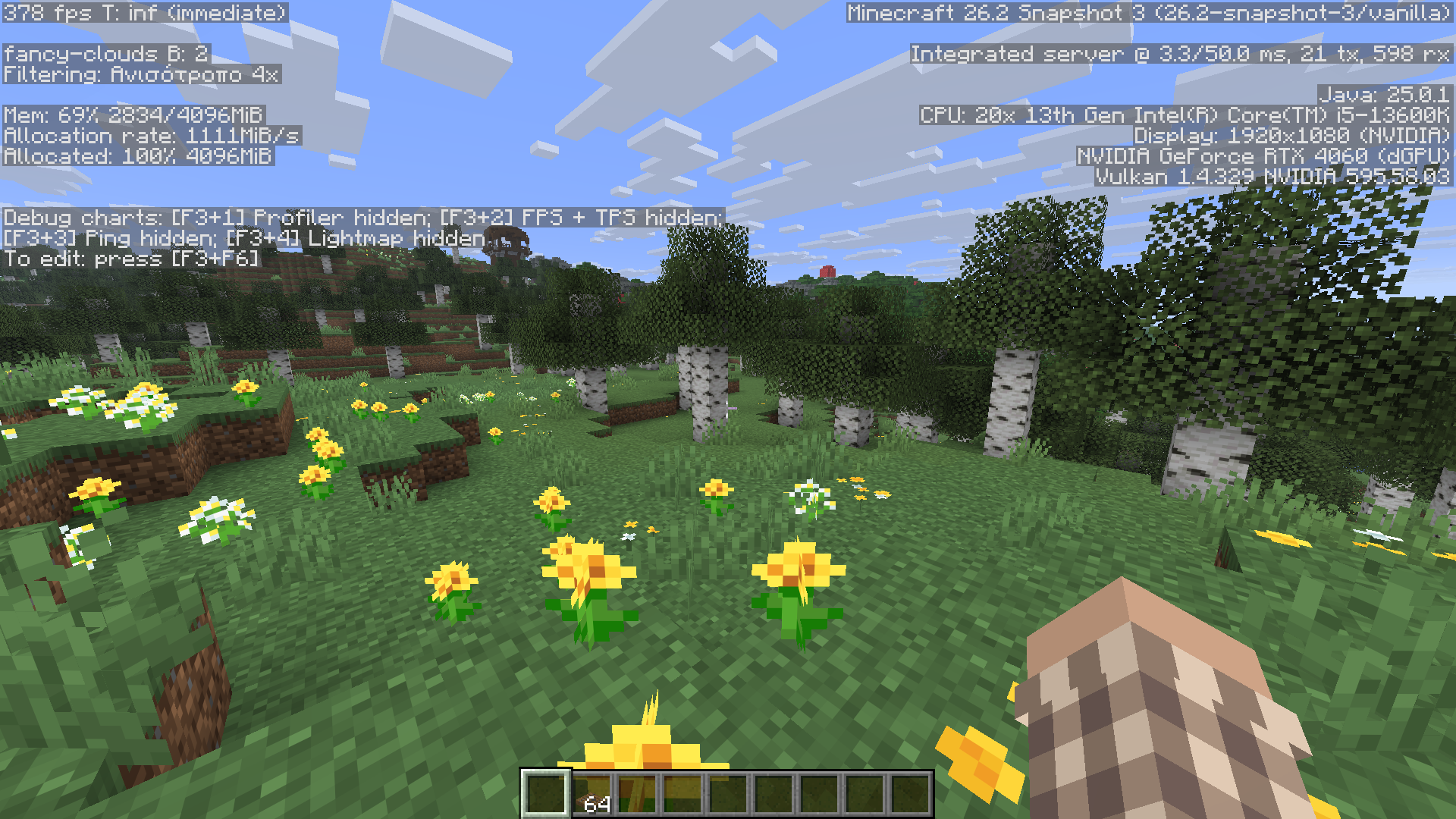 So Minecraft recently added lwjgl 3.4.1 support, that means using the new -DMC_DEBUG_ENABLED -DMC_DEBUG_PREFER_WAYLAND flags, which when launching the game makes it run native on Wayland. When launching it using Xwayland (Minecraft on X11, running with a translation layer, default on Minecraft currently) doesn’t give that FPS issue with OpenGL, the performance is a little better actually, so we know its not Wayland issue but its with the new Vulkan option, but running it native on Wayland gives a much much smoother experience genuinely and for me and a lot of people i suppose its kinda of a must have, that's why we have been using 3rd party custom patches to do that the whole time, plus considering all major Linux Distro’s Desktop Environments are switching to Wayland now, and the Gnome DE which is pretty popular, is Wayland only now, this must be fixed. On OpenGL the Performance between X11 and Wayland is the same (~5fps), on Vulkan tho, I am loosing a lot of FPS when switching from Xwayland to Wayland. For OpenGL there are no issues with Wayland (except the cursor center reset problem which i did made a bug report MC-307253 note, this issue also happens with Vulkan, its a glfw issue, you can fix it with custom patches which a lot of people have done over the community)