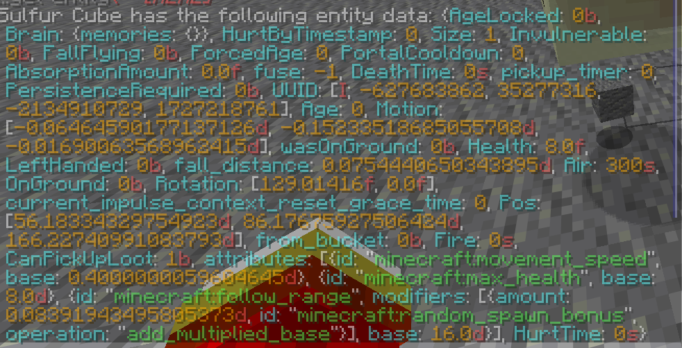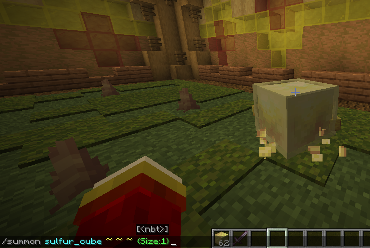 When you summon a Sulfur Cube with the NBT “{Size:1}” it doesn't let it grab any dropped blocks