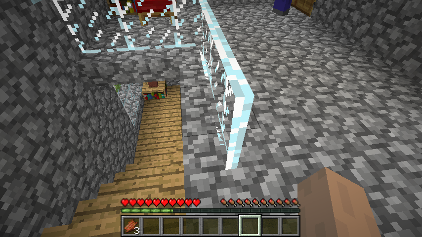 Notice the bottom of the glass pane z-fights with the top half slab.