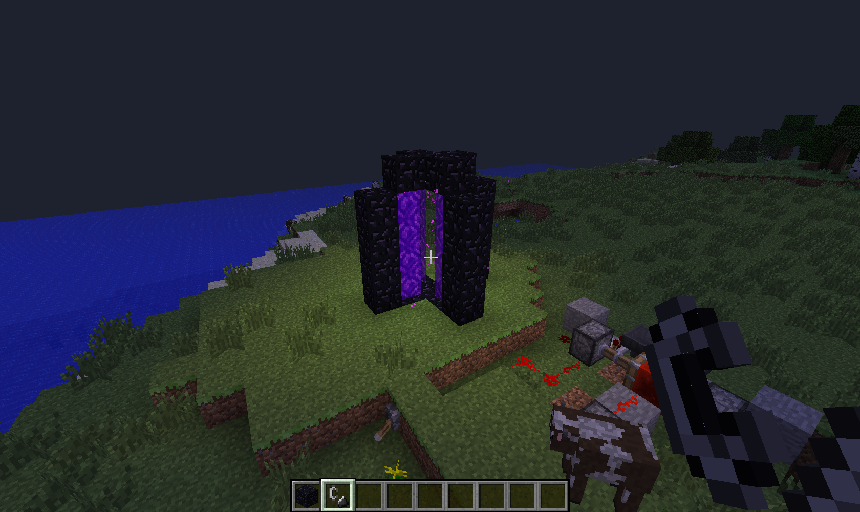 i placed a 3 wide nether portal across, in the middle of another one and it caused a weird graphical glitch