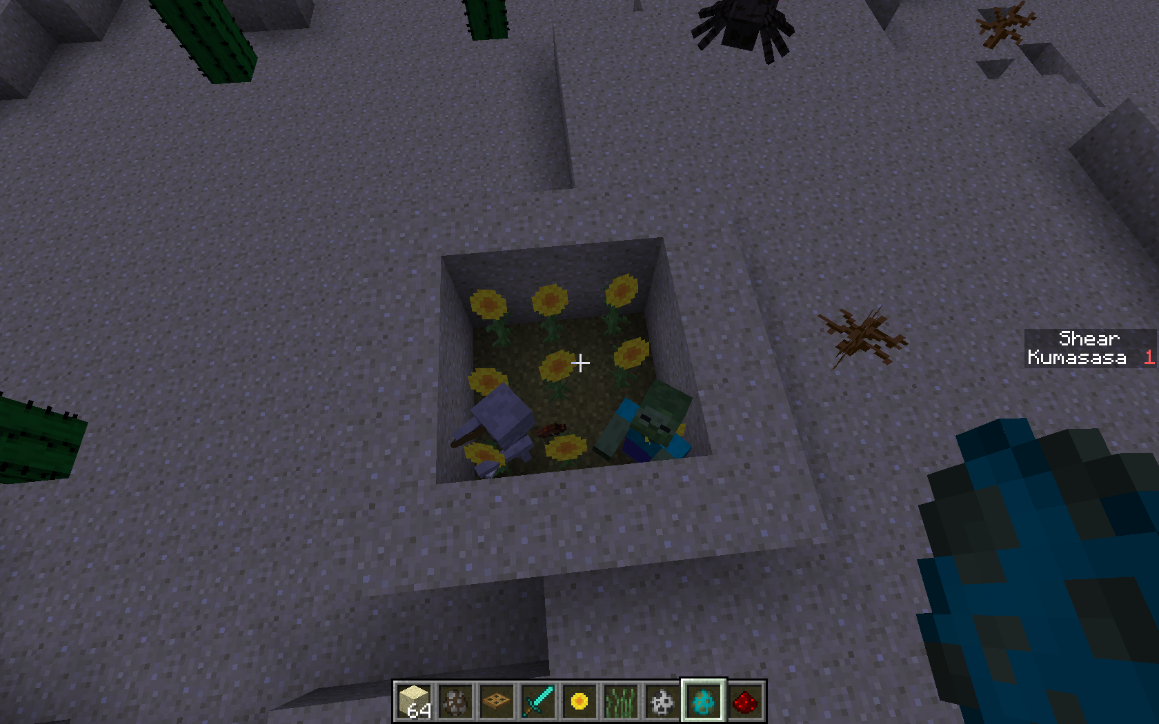 3. Wait for undead mobs (skeletons and/or zombies) to spawn close to the sunflowers