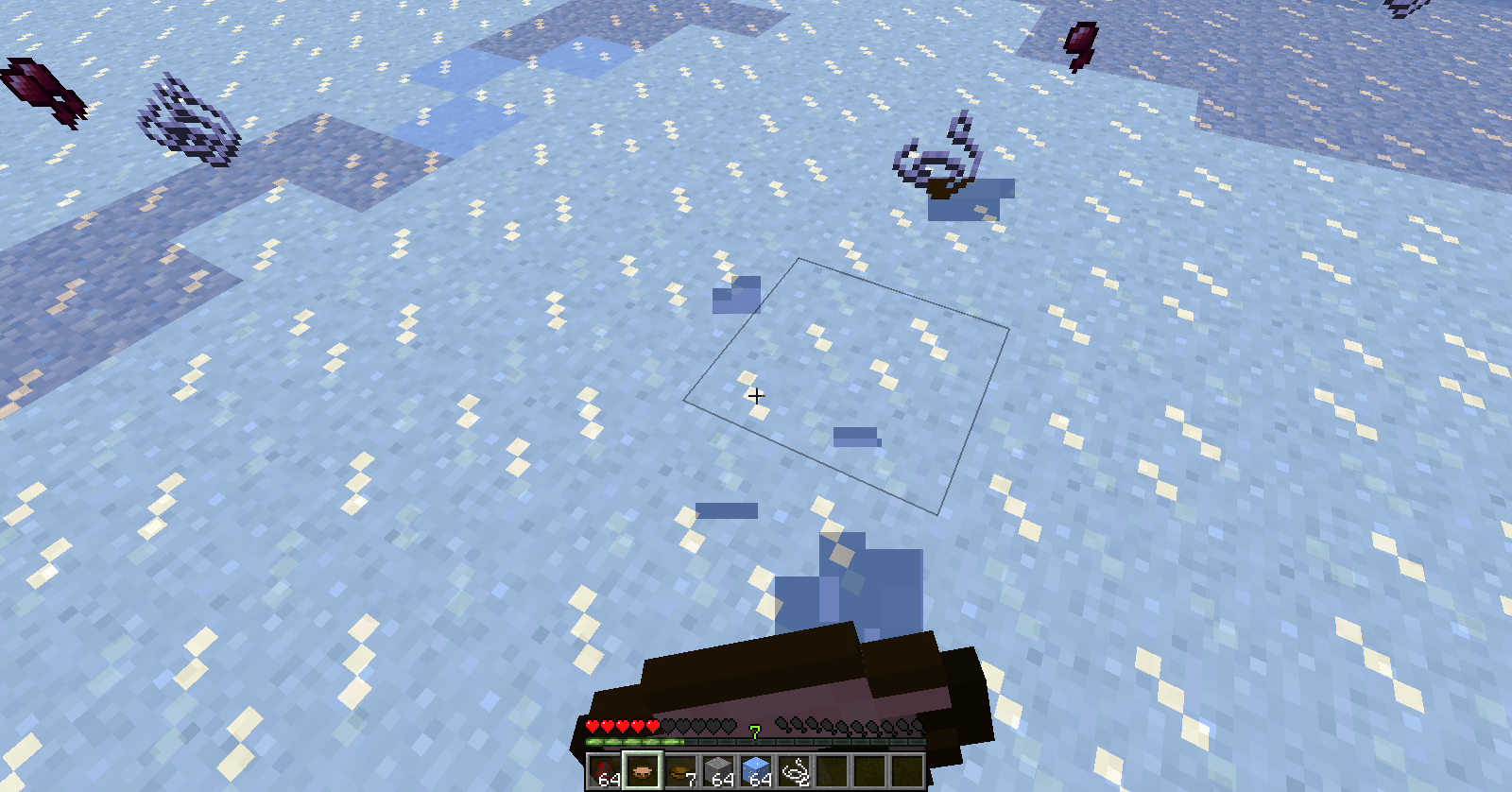 I was walking on ice in a Tundra biome and started eating Mushroom Soup when I was hungry and I looked down and the particles looked like ice (later I realized that it was Mushroom Soup particles behind ice).