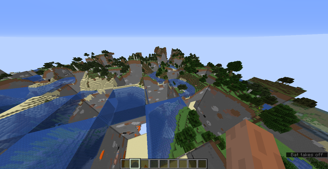 I made a superflat world when i noticed a huge structure in the fog. So i closed up on it and it was a chunk from the default world.