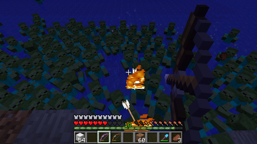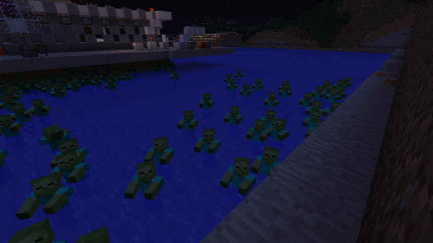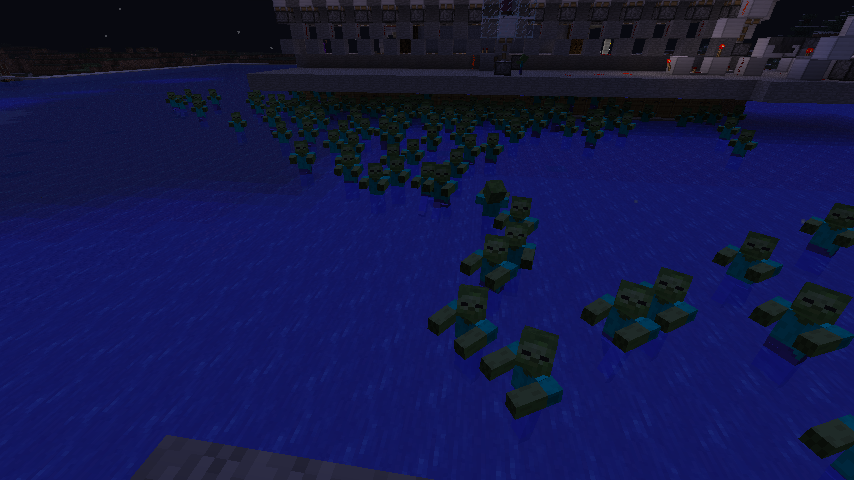 extremly many zombies spawned at ones, around 400. also the zombies spawned in the water, which should be impossible.