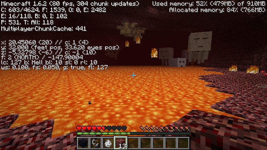 Uploaded 2 screenshots that were taken 2 seconds apart. There are two fireballs that are "stuck" towards the center of the images. The third image (without debug overlay) was taken from my Forge development environment, but shows at least a dozen such fireballs--it would be impossible to generate this image if the fireballs were not stuck. I noticed this error when creating an item that allows the player to shoot fireballs and was rapidly quitting out, tweaking the code, and relaunching.