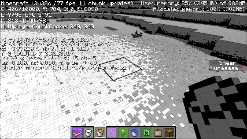 I've deleted my whole .Minecraft file in appdata and the glitch still occured. I've tried pressing the Super Secret Settings button but nothing happens to the visual interface - instead I hear random sounds. GPU = NVIDIA GeForce 7600 GS, Os = Windows Xp
