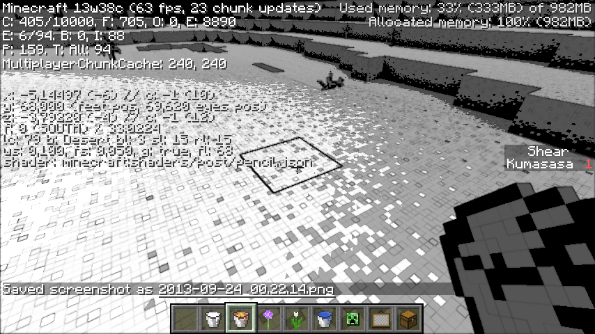 I was playing around with the new shaders, and I found the motion blur one, and I thought "That would look awesome with a speed potion", so I got one from the creative menu, and it looked fine, no enchantment background, but when I put it on the hotbar, things changed.