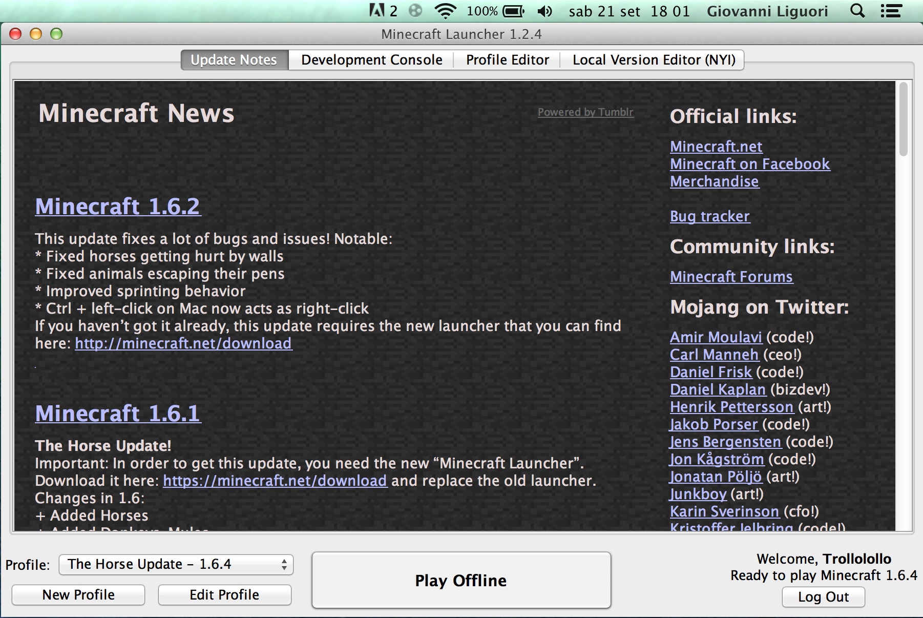 I'm on Mac running OS X 10.8.5 and Minecraft Launcher 1.2.4