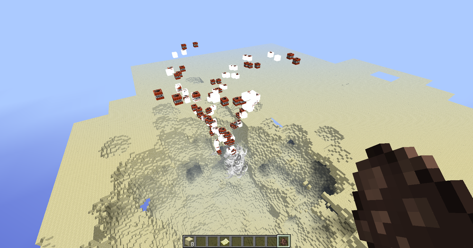 well i'm just using the new tnt tornado from sethbling ,then i place a villager near it (not in the blast range just in a hole it created) so i place him and he sinks into the groung all the way not just to his hips like that other bug