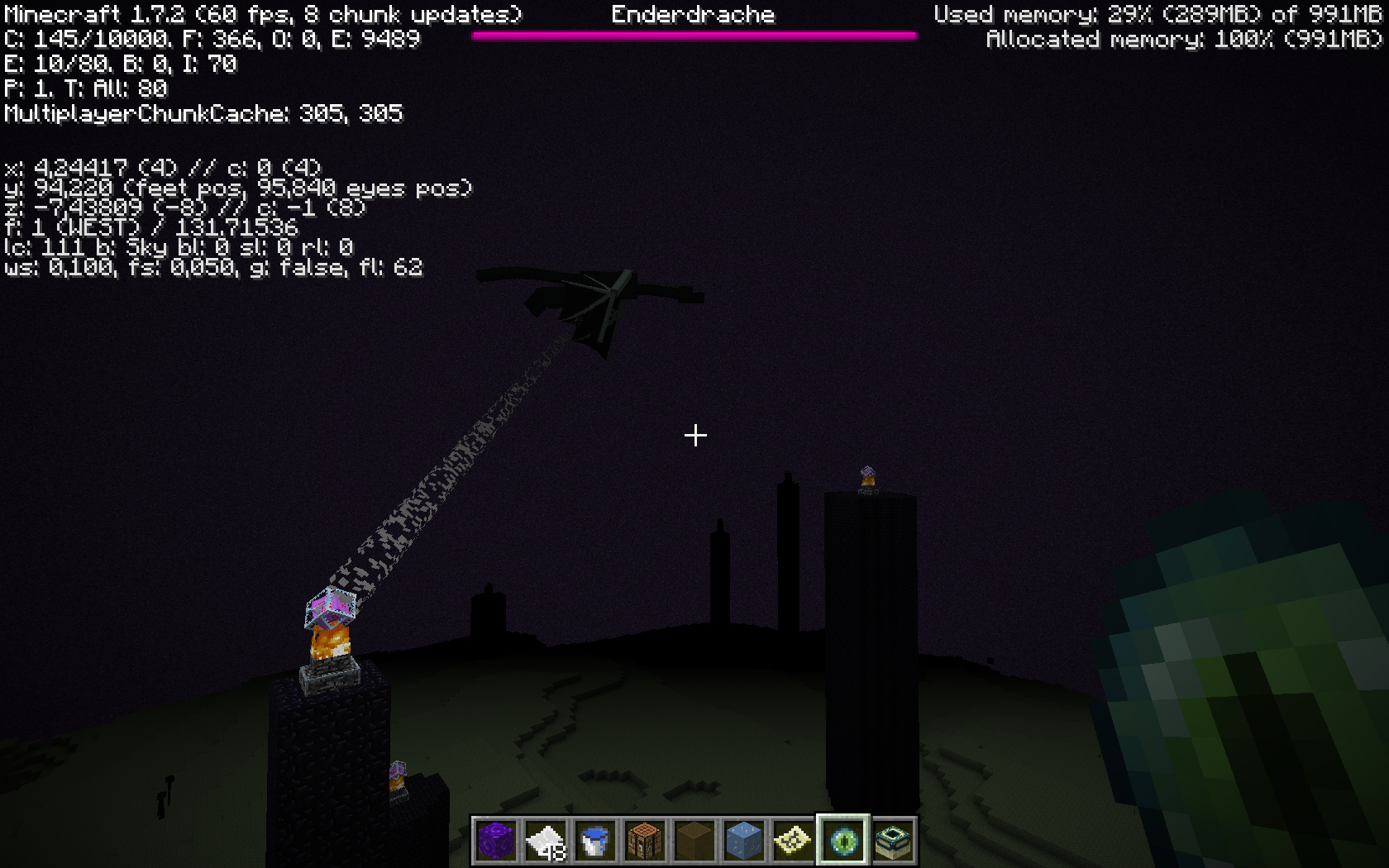 This bug is simple enough. In the latest snapshot (and possibly earlier), ender crystals no longer show their 'beam' effects. Attached is a screenshot taken in the latest version, and a screenshot from the wiki. May be tied to MC-31649.