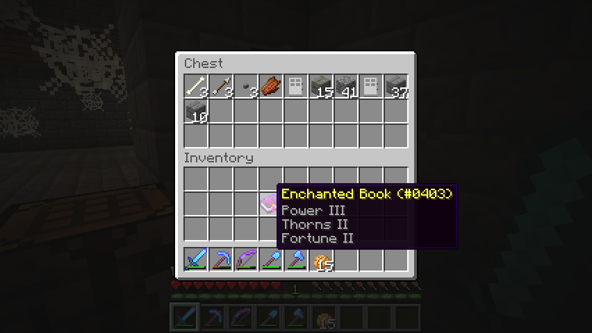 Books spawning as loot in either dungeons or strongholds have multiple enchantments that are each for a different tool.