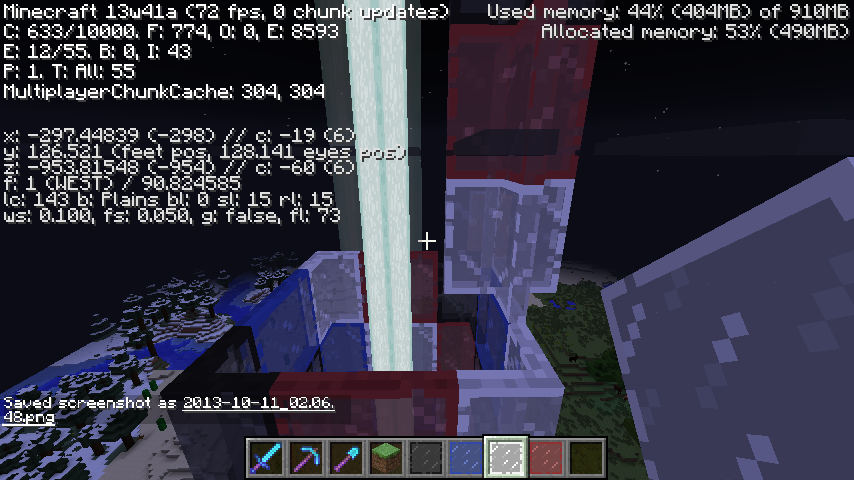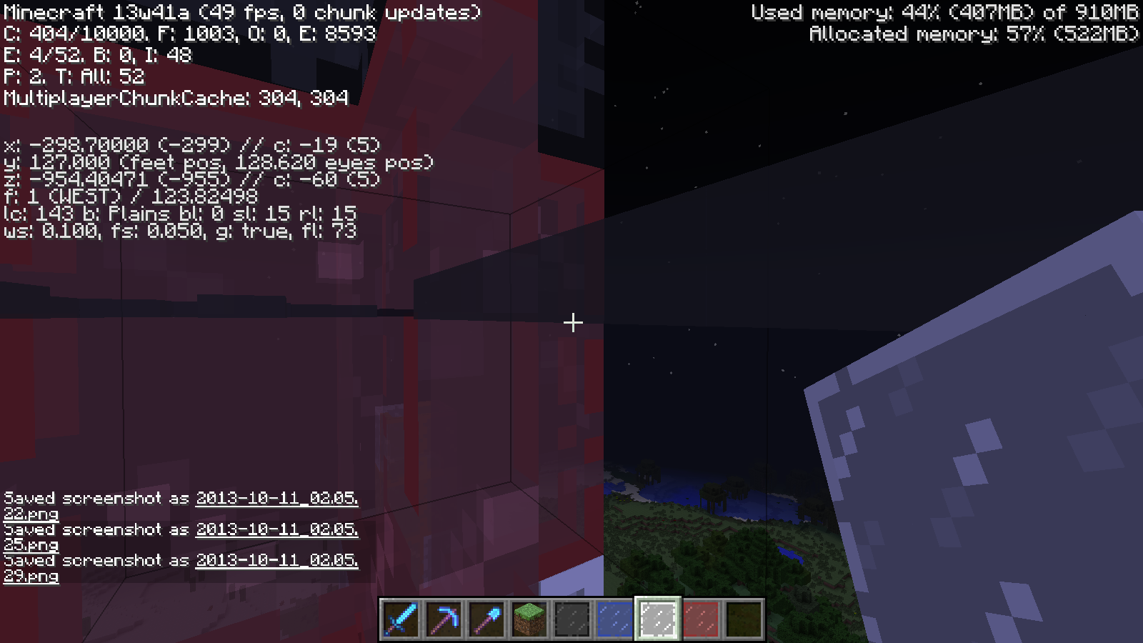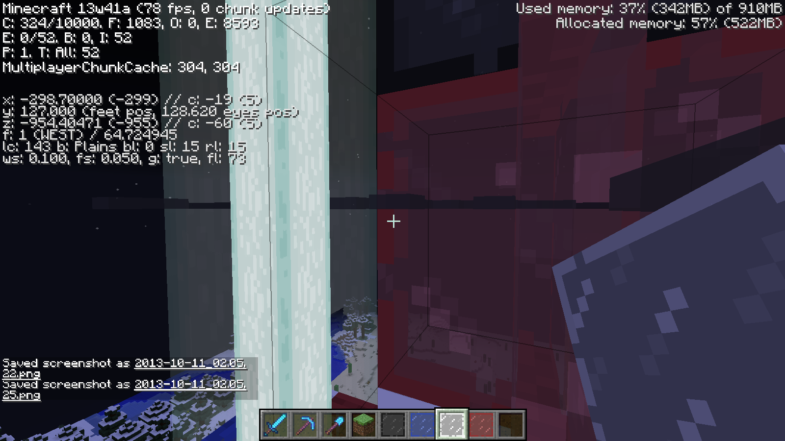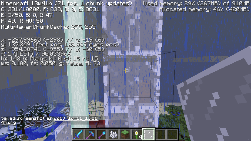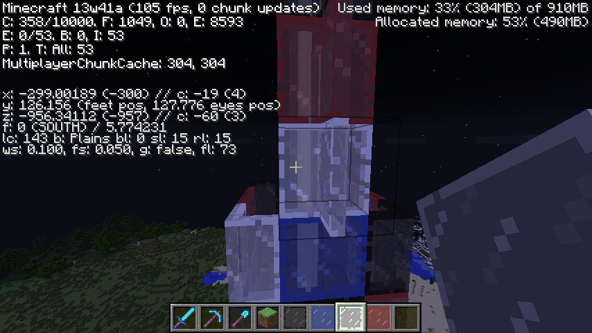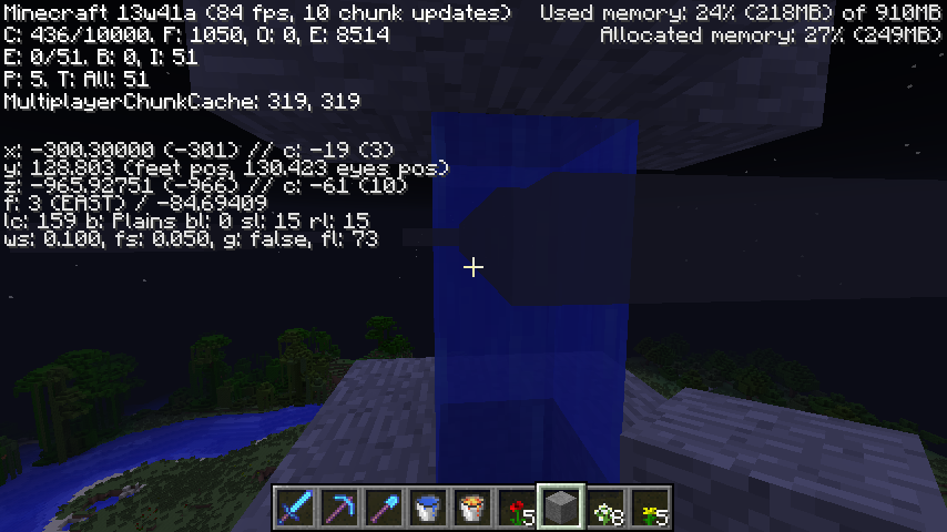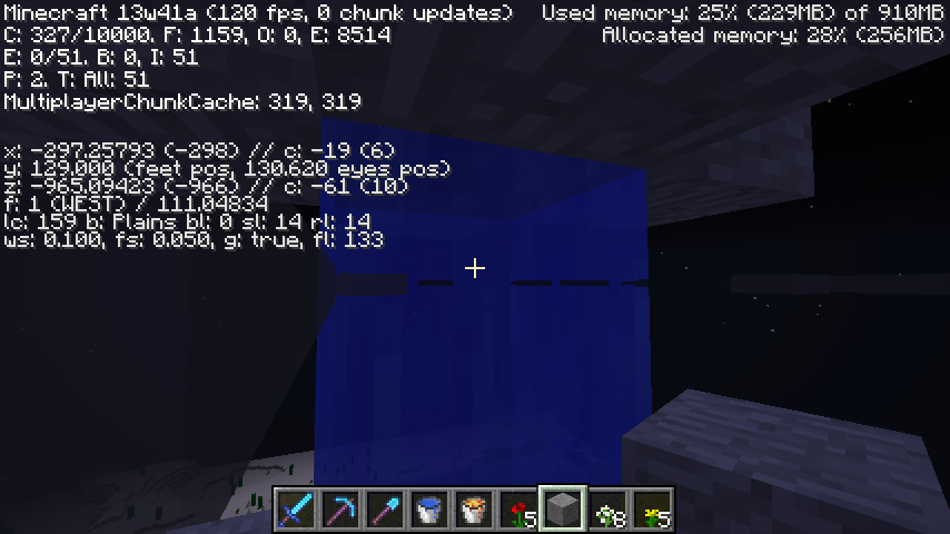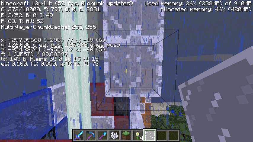 Clouds don't render properly through Glass blocks (including Stained Glass), Glass panes (including Stained panes), and water. This problem occurs when viewed at Y coordinate of 127 and above. Tested in creative. Has not been tested on other blocks. Only been tested on snapshots 13w41a and 13w41b.