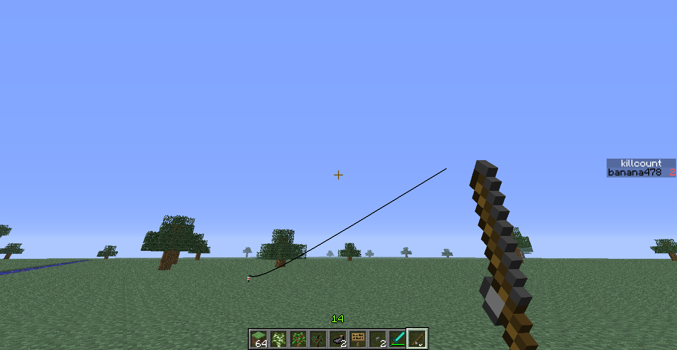 I did use the search; this is not the same bug as MC-2920. That bug has to do with how the line is shown when using the pole to strike. This bug is about how the line appears when NOT striking. Please re-open this bug report.