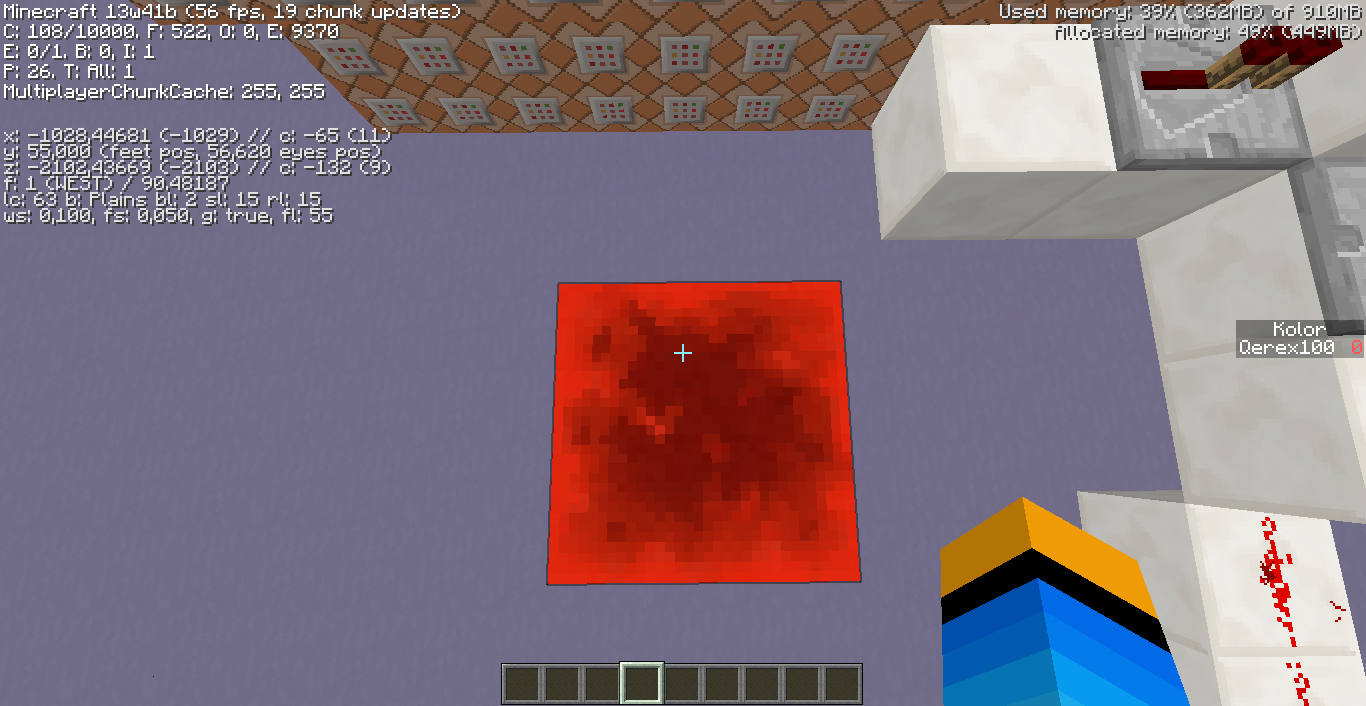 -2,-1 or 0 blocks away from the x and -2,-1 or 0 blocks away from the z