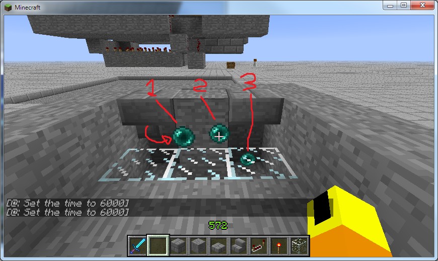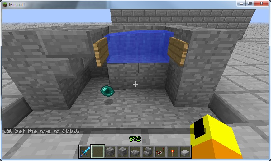 In Screenshot 3, the item is enclosed. In this setup, the item will simply bounce around indefinitely, often several blocks away if not for the water current. Rarely, the item will finally pass under the stairs, but this can take several seconds.