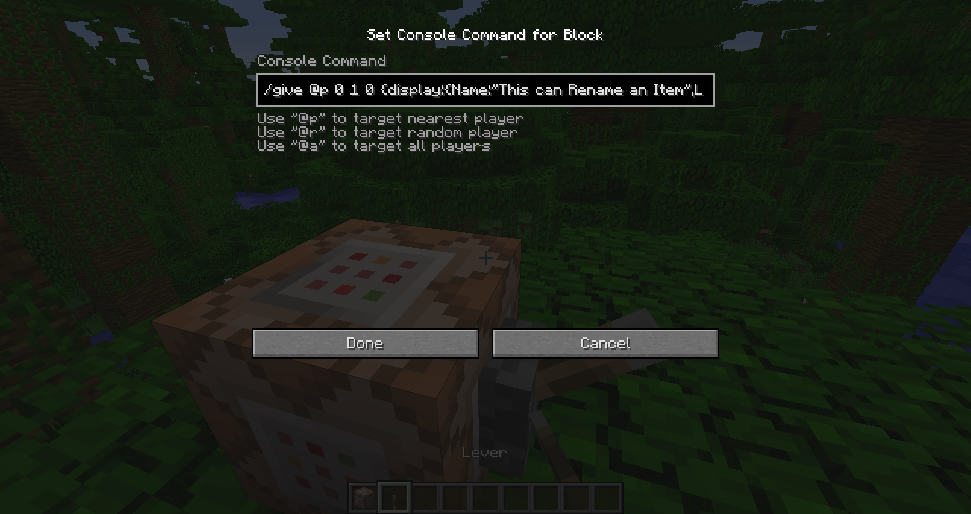 When I give myself item 0 with Lore and a Name in a command block, it crashed the Client.