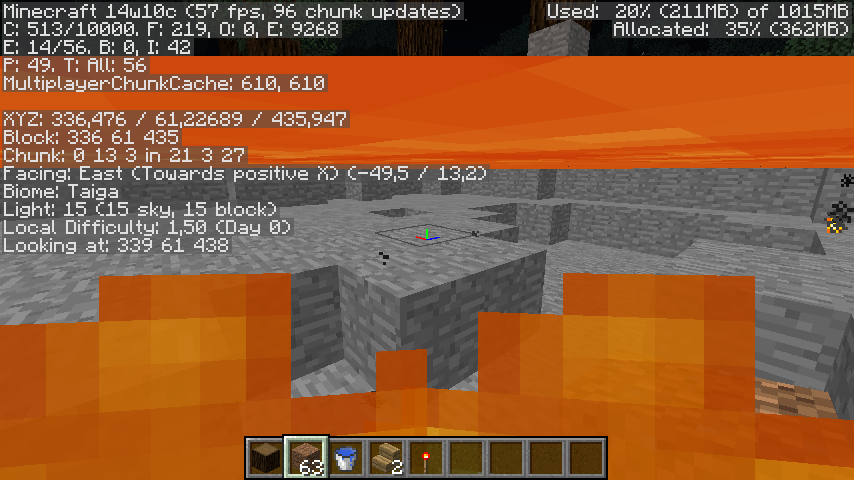 /setblock ~ 64 ~ lava/tp ~ 62.39 ~Start looking up and down