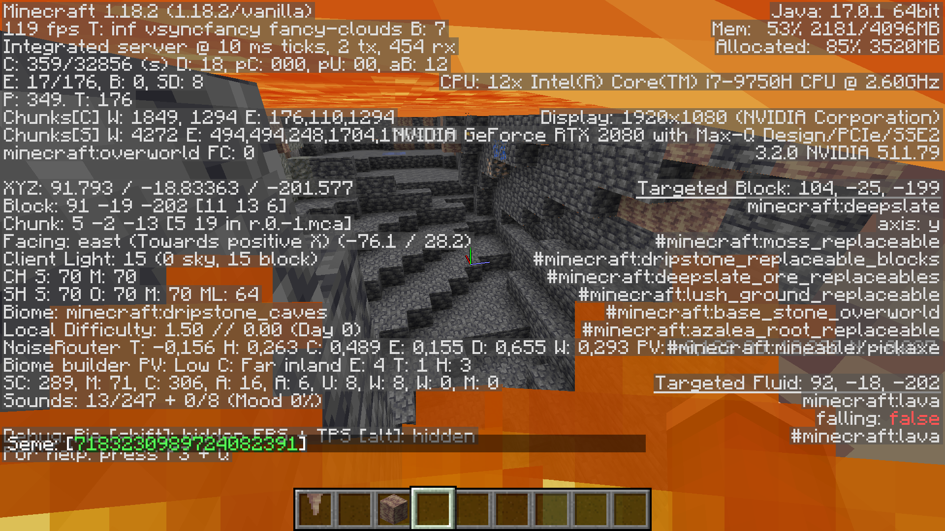 When standing so that the player is just inside lava (a very small range), it is possible to see through it (third screenshot). This also occurs when the player's head is back against a block and touching a block above it in flowing lava that is next to a source block (first two screenshots).