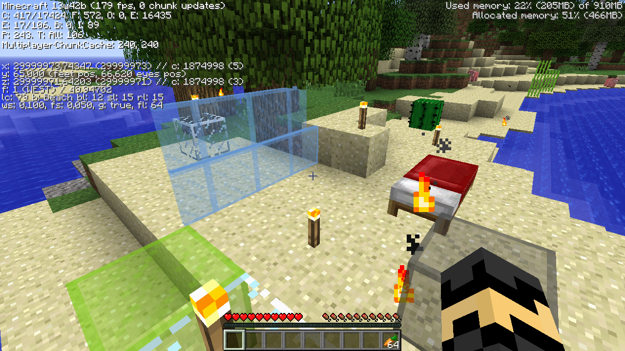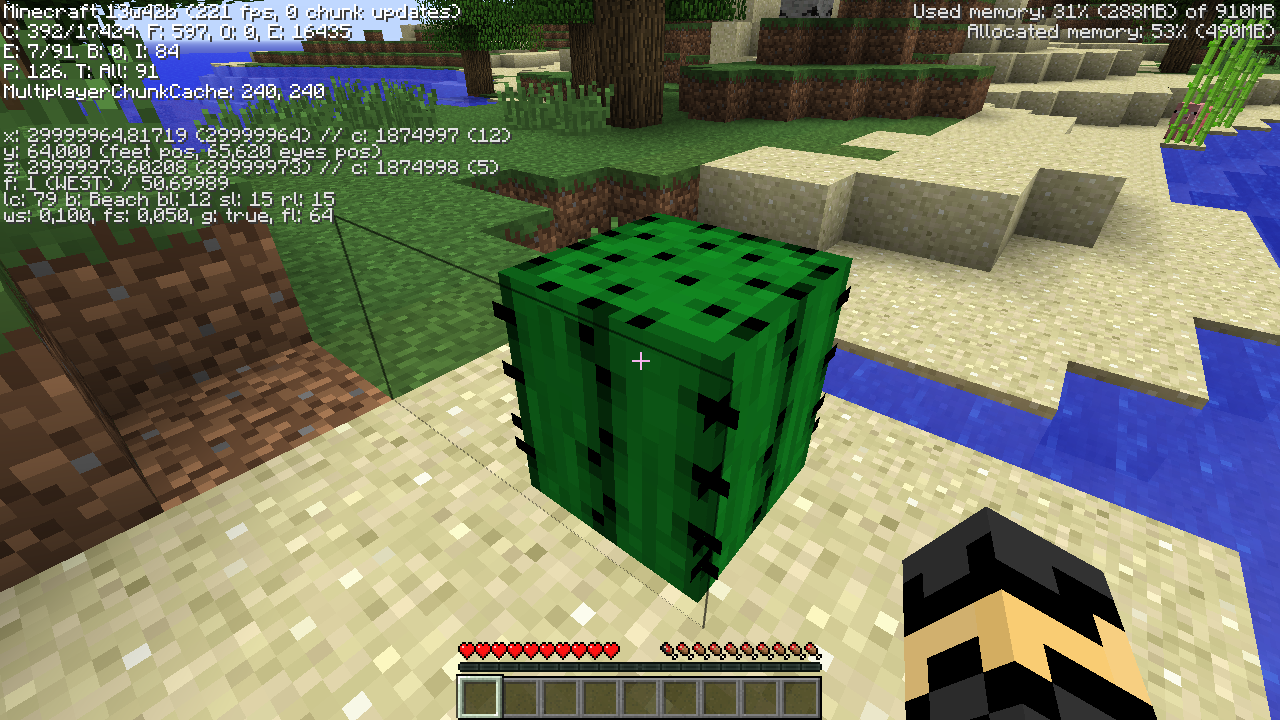 These include particles rendered in wrong locations (at least torch flames and the new particles from hitting the ground), sounds playing from incorrect directions, and even glitched cactus hitboxes.