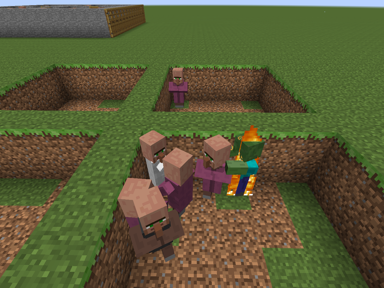 I noticed that zombies are trying to kill only one goal. Although it is not logical. I tested on the villager and found that zombies really choose one target.But they face more villagers but it does not kill them. Sorry for my english is Google 🙂