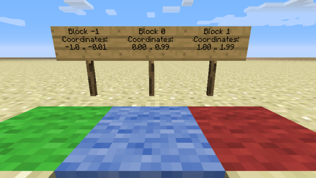 Commands with coordinates in their output messages do not display the coordinates that can be seen next to “XYZ” in the debug overlay (F3). For example, /teleport @s -3 82 -6 will output Teleported [player] to -2.500000, 82.000000, -5.500000.