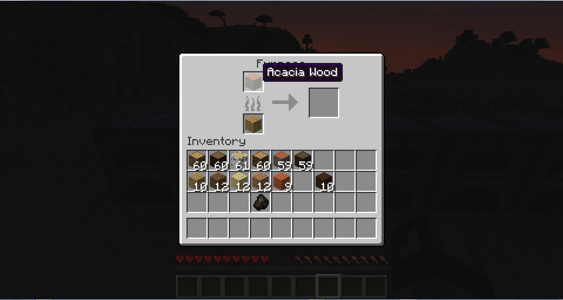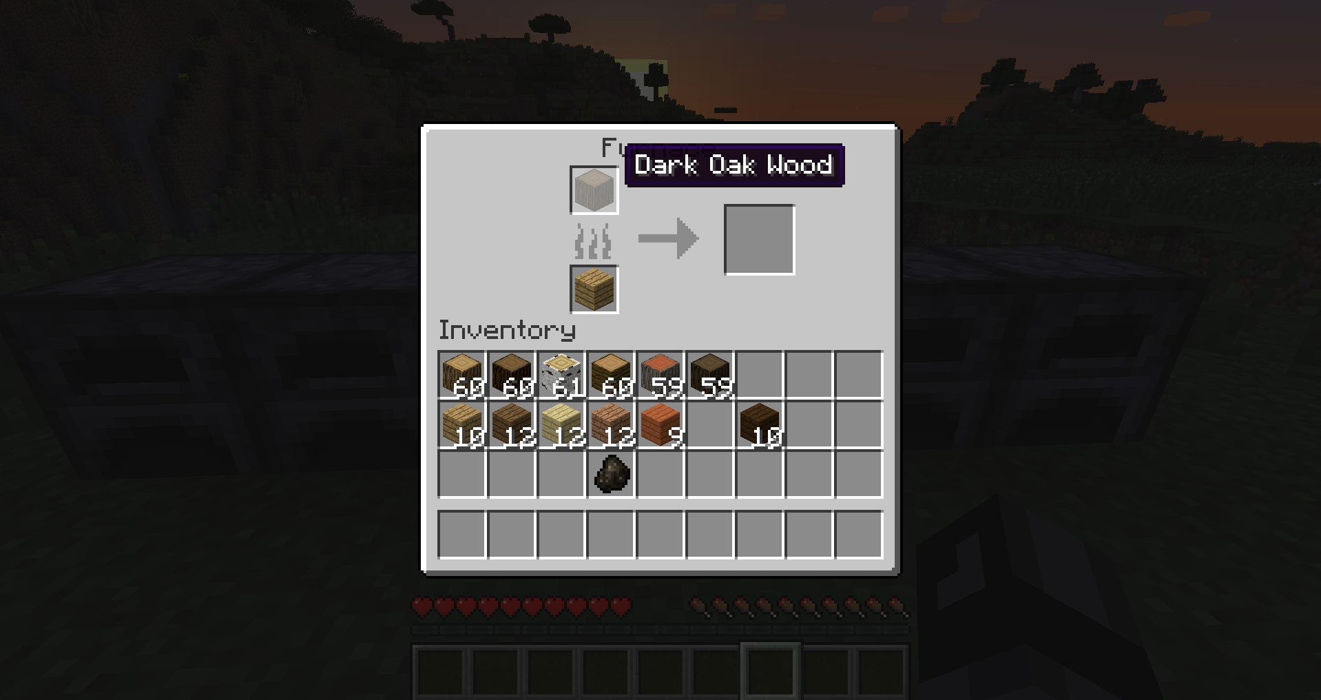 acacia-log, charcoal, dark-oak-log, furnace, smelting