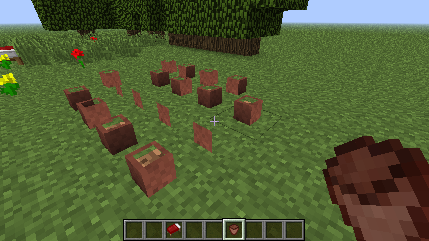 Particle Effects are shown farther away from their source, as shown with the torches, the furnace, and the fire.