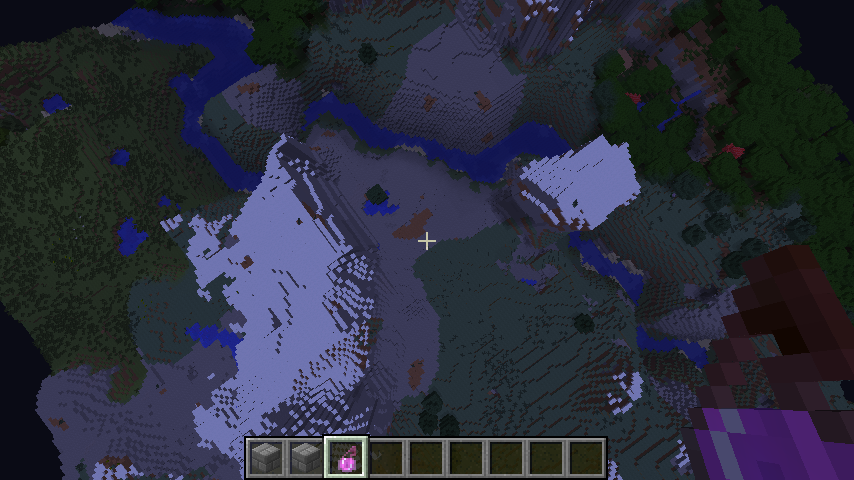 I was flying around (while recording) and I found a VERY LARGE stone biome, ive seen them for almost 3-4 updates but never this large, also witches randomly spawn in this biome, I don't know if its part of the update or what also on the far right large mushrooms are spawning randomly in forests