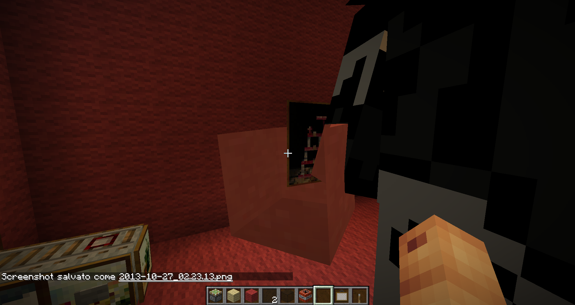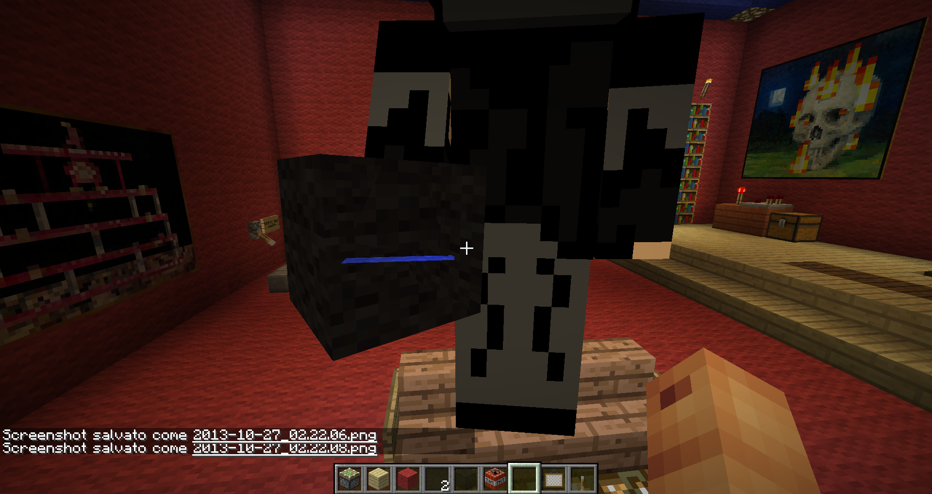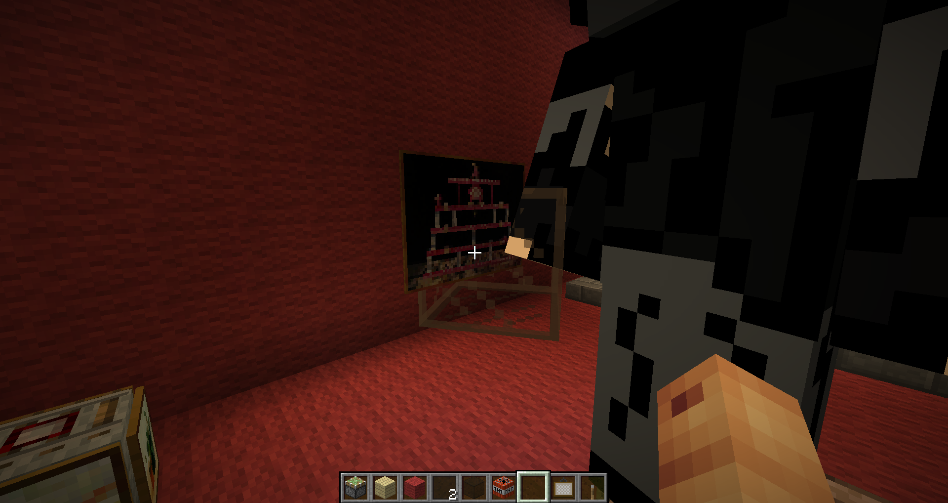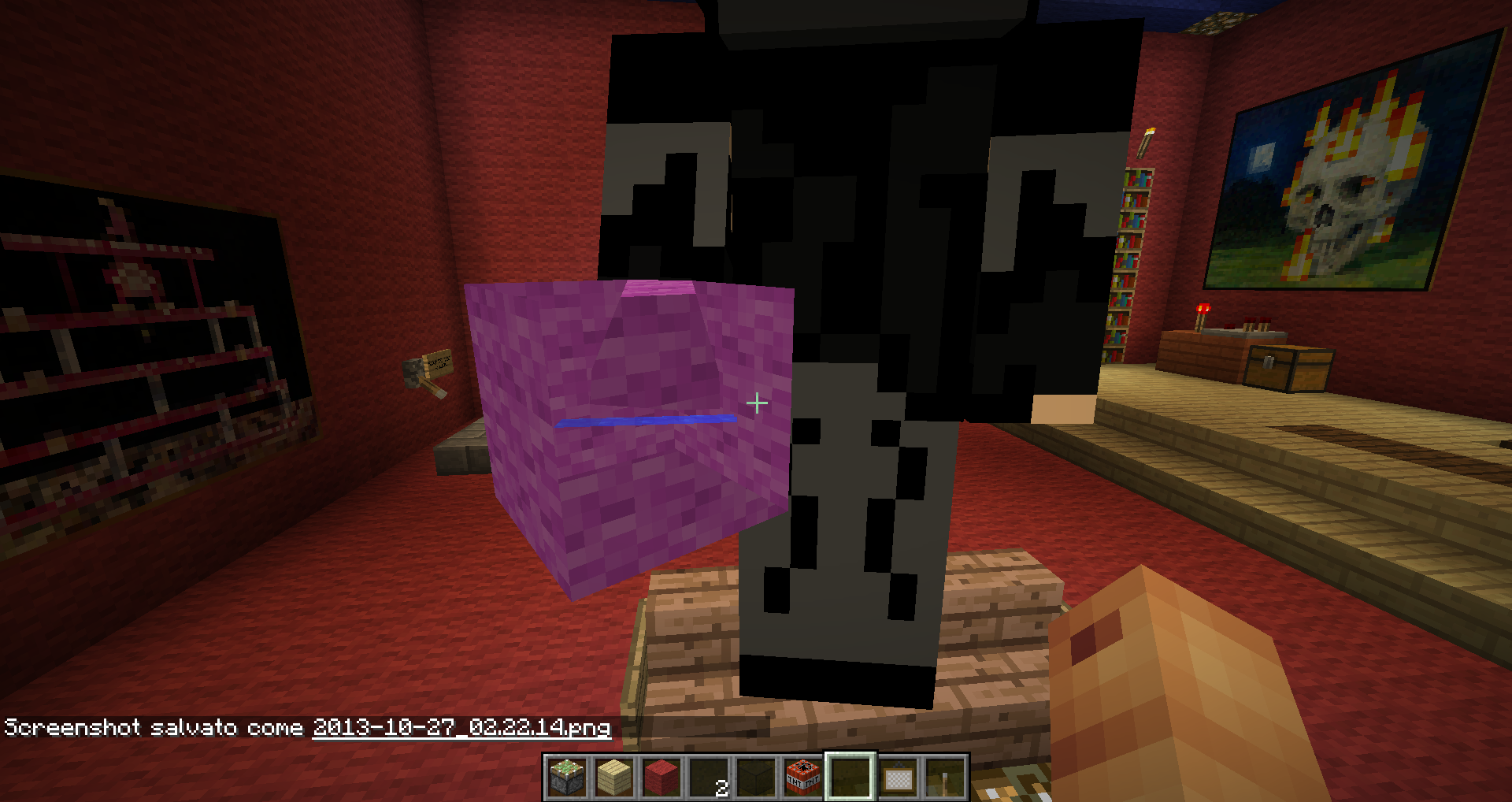 During a quiet game in minecraft, I notice that when my friend was holding stained glass, clay and wool, a glitch occurred with items such as water, lava, paintings, chest and other objects. Everything works even holding the item and pressing F5 framing one of the objects affected by the bug.