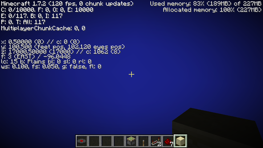 The 'Used memory' in the F3 screen never reaches 100% even when the crash already occurred.