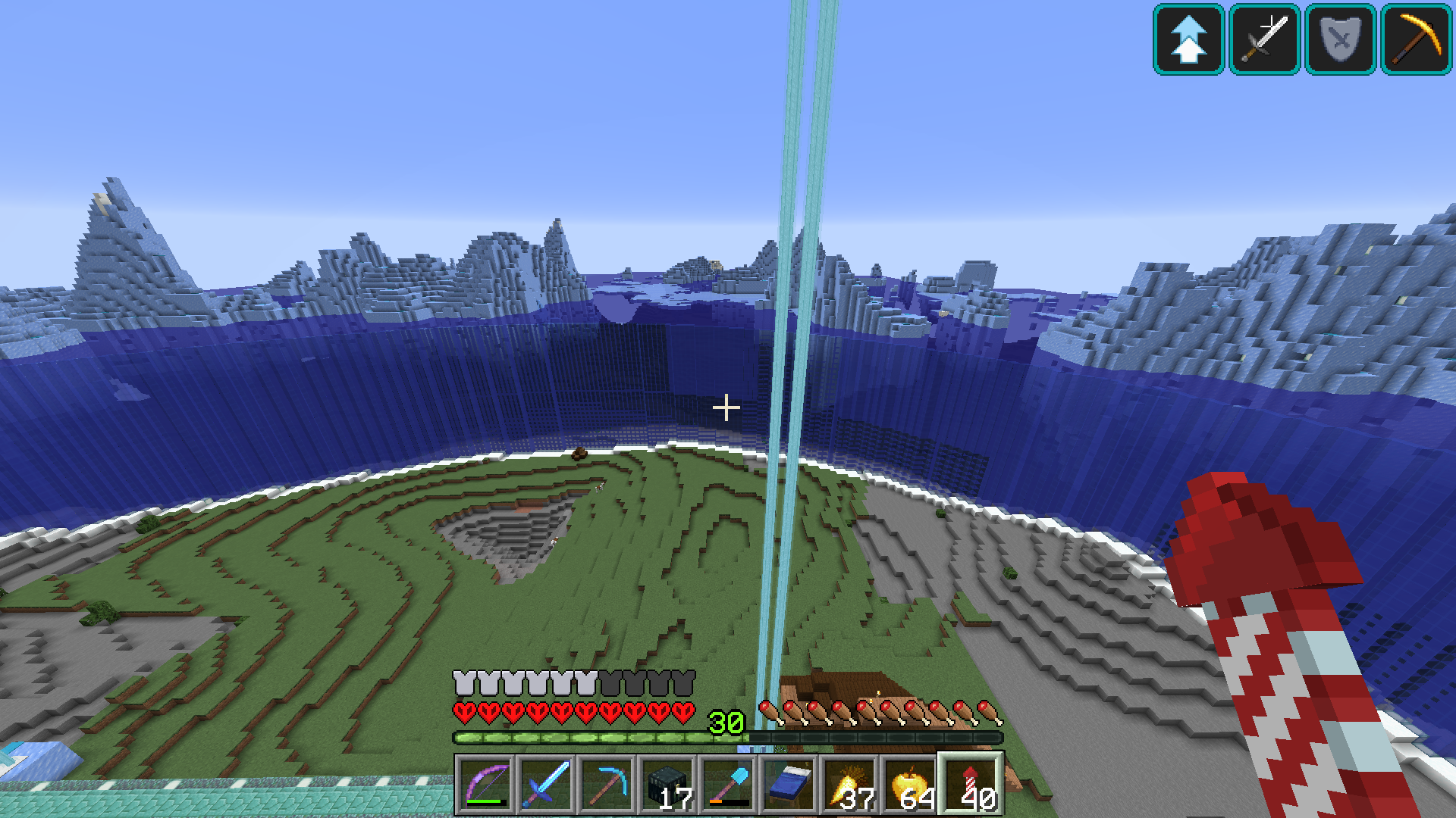 What I just described with the glass world is also what's going on with the ice (the water is ordered "in front" of the two inside faces of ice, while it's actually behind them) and before the fix to MC-9553 was implemented the water would actually follow this incorrect order and render in front of the ice.