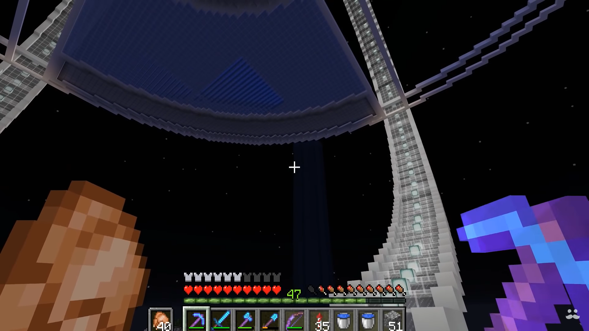 minecraft:bedrock,minecraft:green_stained_glass,minecraft:red_stained_glass,minecraft:blue_stained_glass;minecraft:the_void2. Fly up ~10 blocks (doesn't matter much)