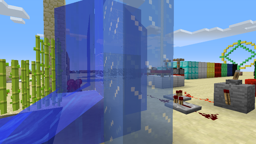 Supposedly, around snapshot 13w42a, water would no longer render through ice if the ice was directly adjacent to the water. However, this is not the case in 1.7.2. This makes for some very ugly rendering issues. Note that the bug is that the ice is VISIBLE.