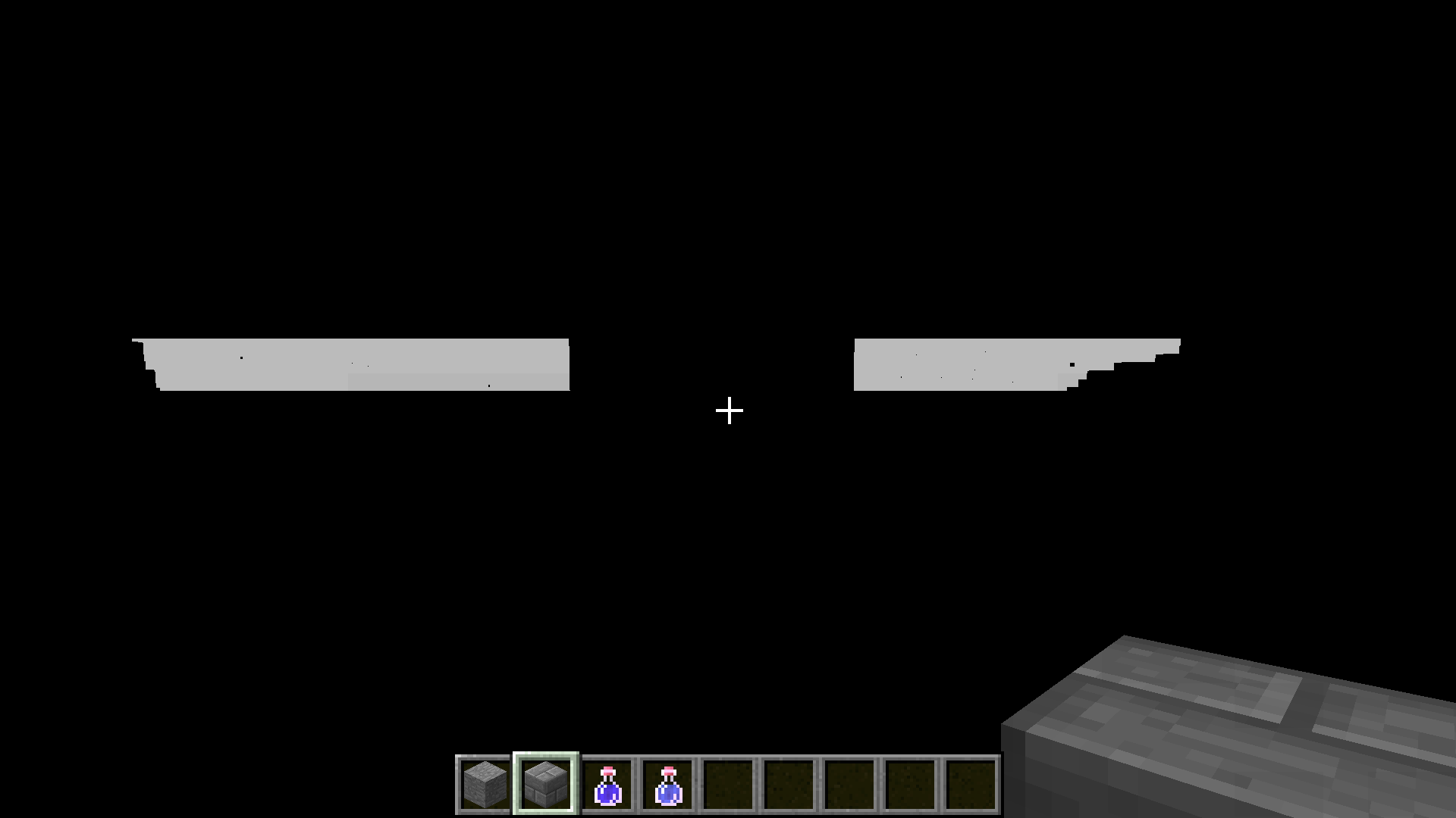 While I had the night vision and water breathing potions on and i was underwater, in creative mode, moving backwards and placing blocks by holding down the right click button, the screen went mostly black but there was a strip of white.