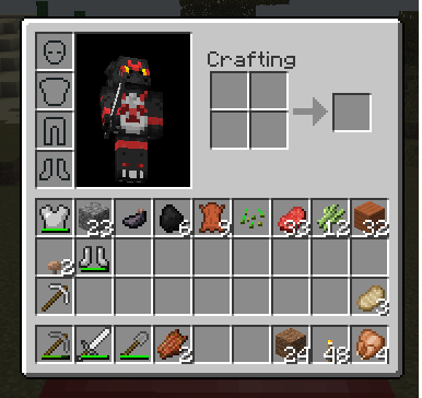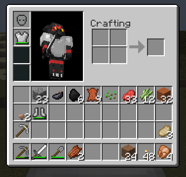 When the chest plate was equipped without other armor being equipped, the pants and boots squares would instead render as flat dark grey, as would the pants if they boots were then equipped.
